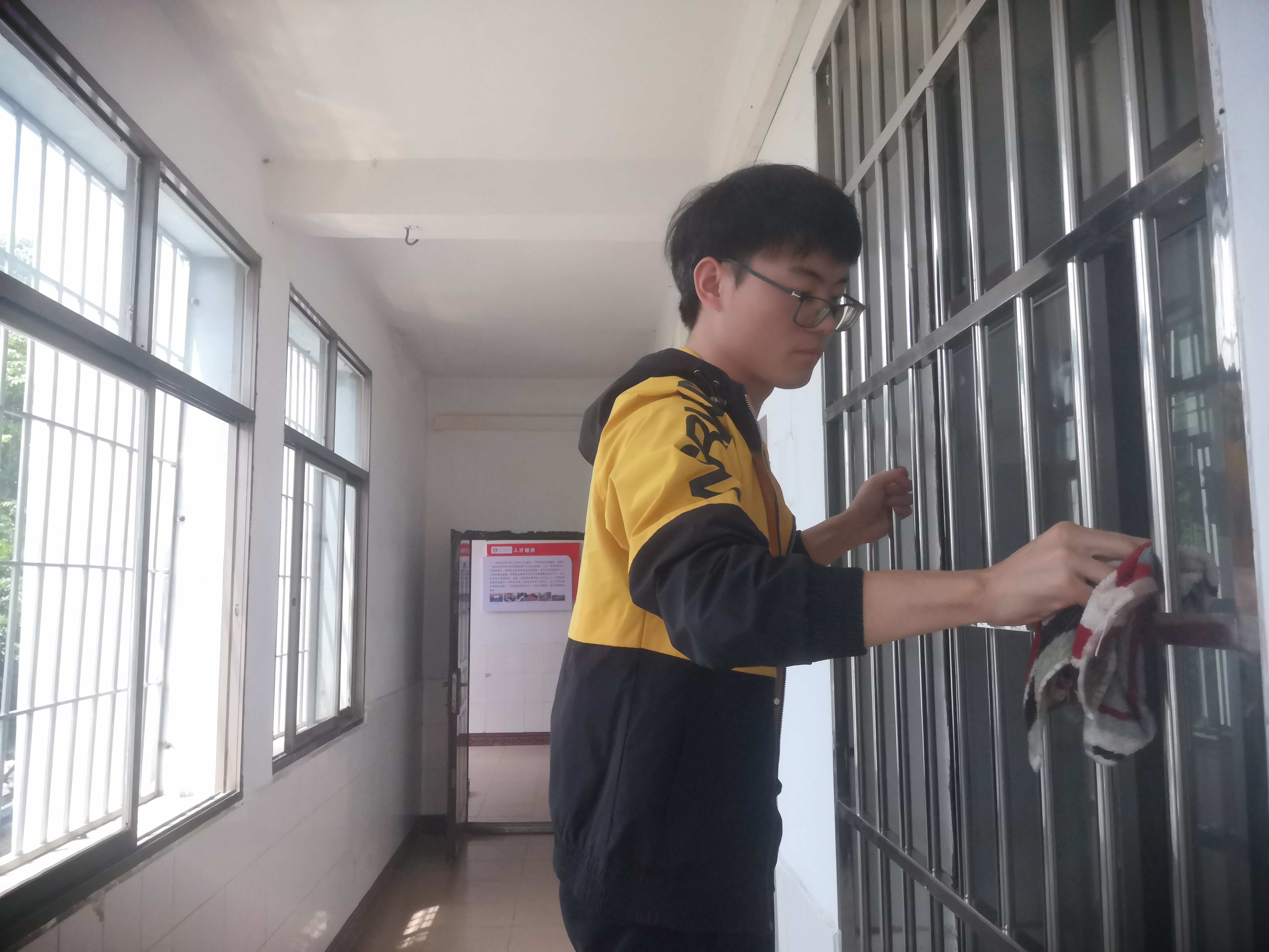 到场学生,两两一组,分工合作,扫地、拖地、擦窗户,一丝不苟,尽管在劳动过后,自己额头上已经浸了一层薄汗,同学们却纷纷表示,五一劳动节能在劳动中度过,自己非常开心,特别是最后看到教室在自己的打扫下变得干净整洁,很有成就感。