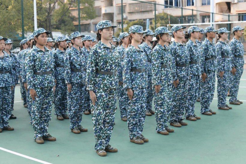 新生与教官会面后,军训即刻拉开帷幕。同学们身着整齐的迷彩服,在训练场上精神抖擞。站军姿时,他们昂首挺胸,展现出坚定的意志;走正步时,步伐整齐划一,充满着青春的活力。