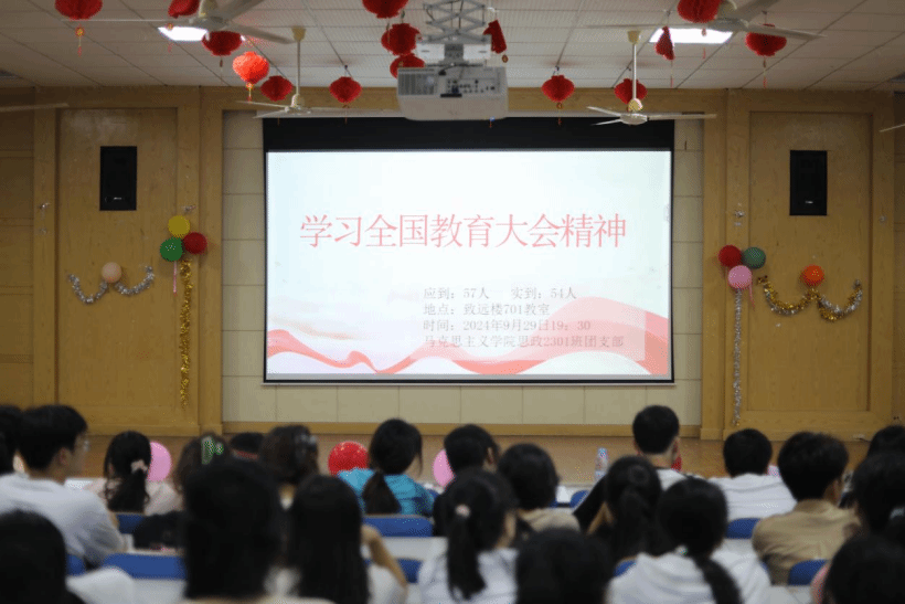 本网讯(记者 杨鑫杰)为深入学习贯彻党中央在北京召开的全国教育大会精神,教育引导学生坚定马克思主义信仰、中国特色社会主义信念、做挺膺担当奋斗者。9月29日,2301班于致远楼701教室开展“学习全国教育大会精神”主题团日活动。