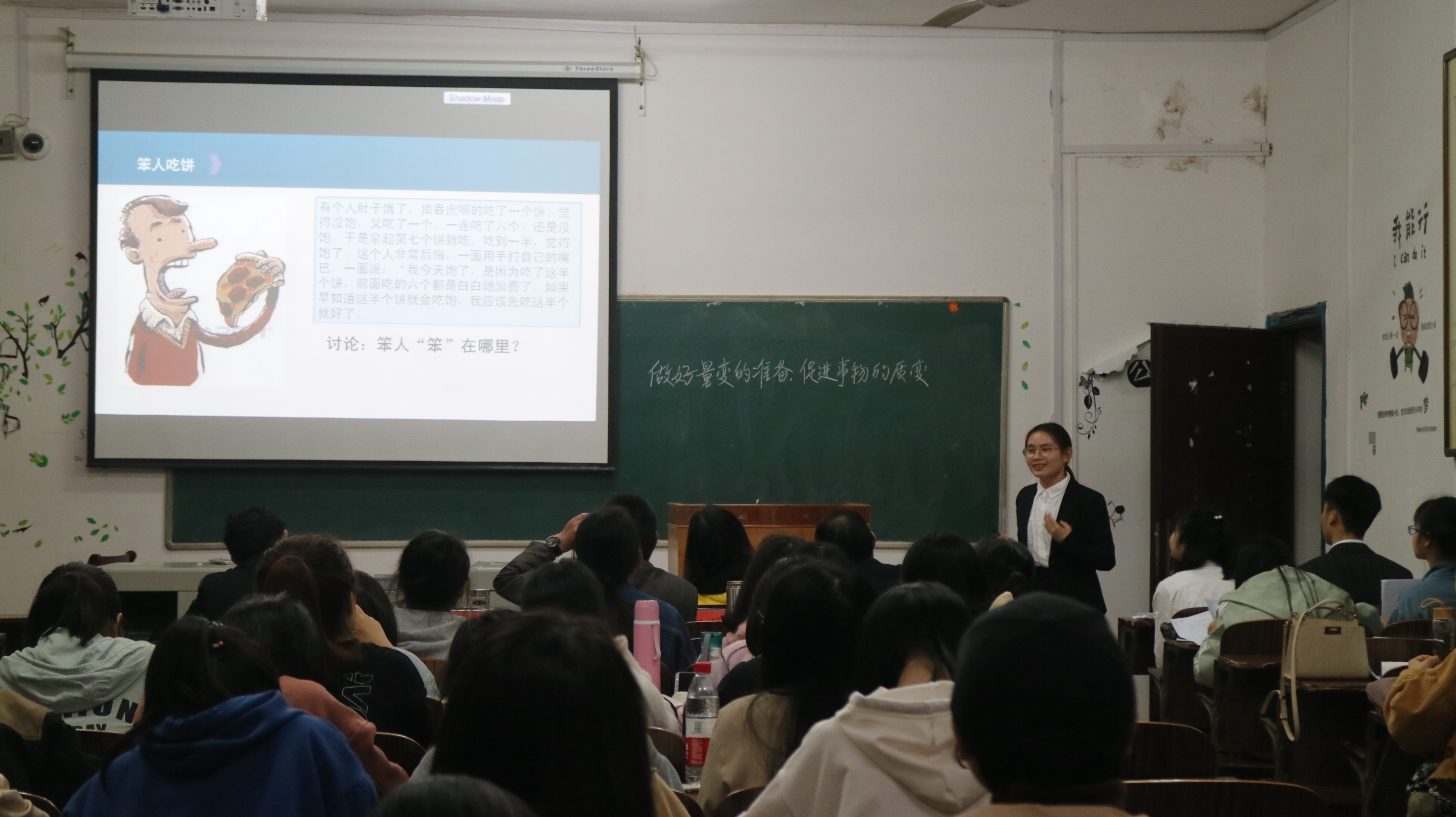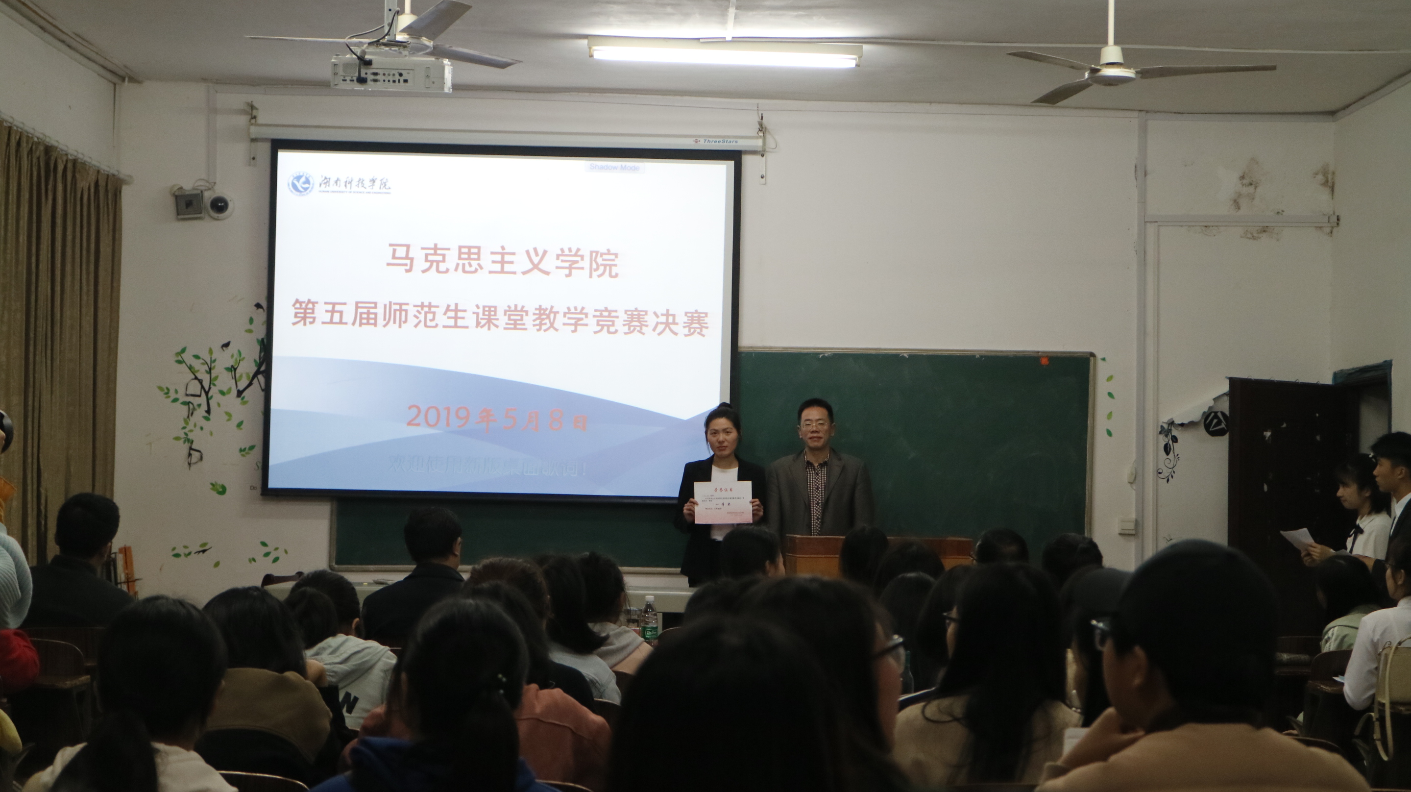 本网讯(通讯员 黎雪平)5月8日晚,马克思主义学院第五届师范生课堂教学竞赛决赛在鹤鸣楼501举行。历经初赛,晋级决赛的10位参赛选手同台竞技,上演了一场精彩纷呈的讲课“大比拼”。该院副院长杨军教授、周芳检博士,中国化马克思主义理论教学部主任何志平,思想政治教育系主任邓怡舟担任评委。