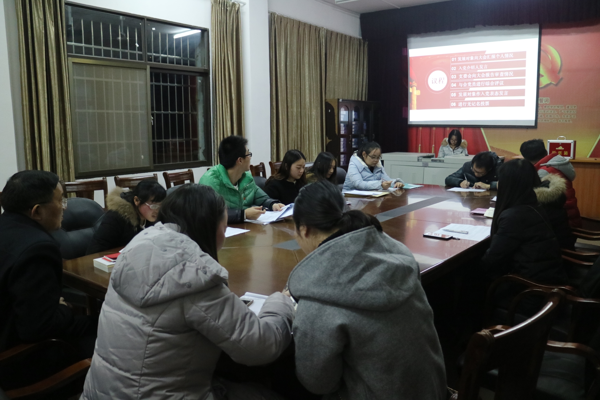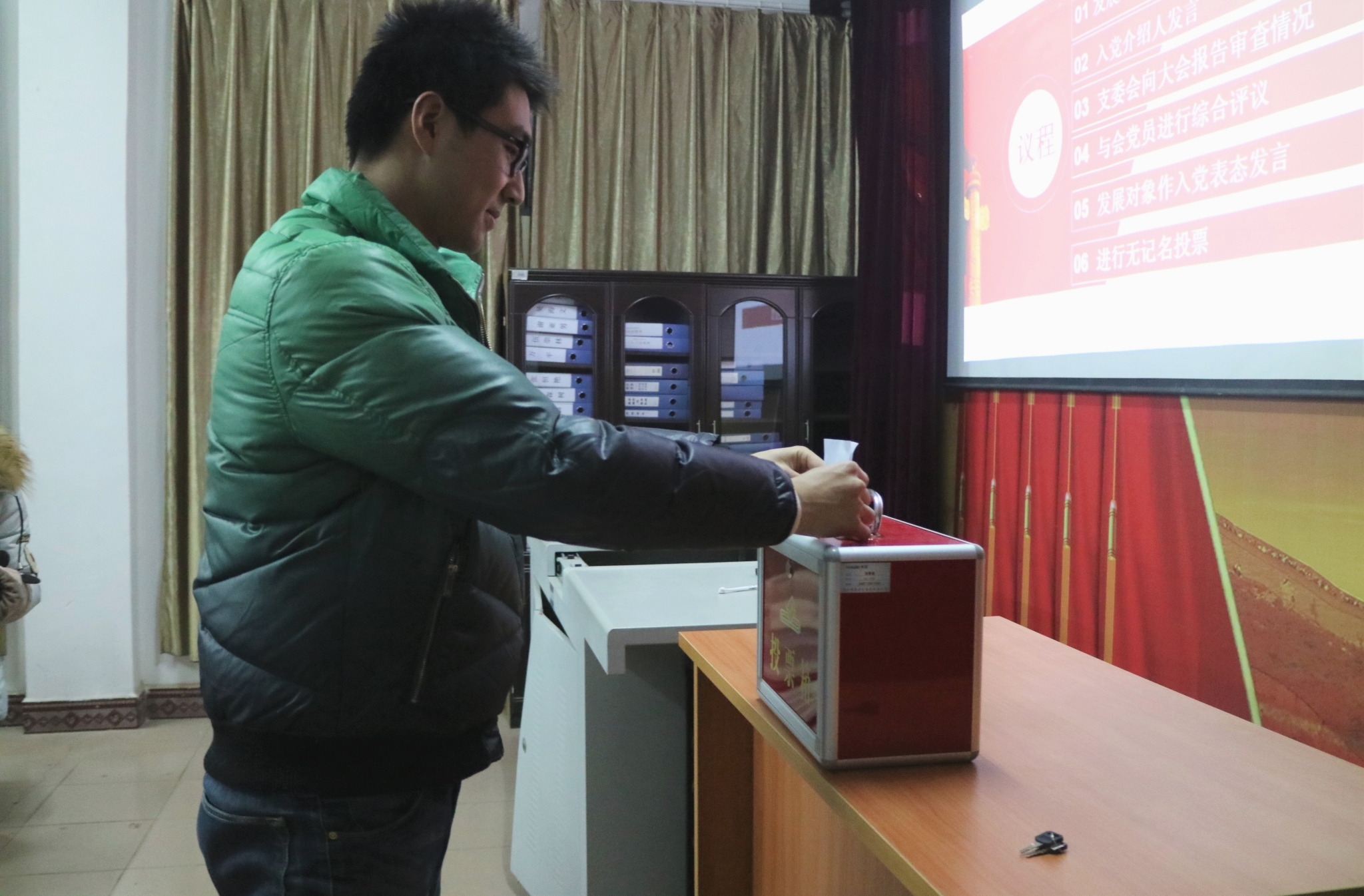 会上,张思敏、张力、郭伶懿、徐诗佳四名党员发展对象作自我情况汇报后,由其推荐人对发展对象的情况进行介绍及与会人员做出评价,随后经与会党员对发展对象的情况讨论投票后一致通过张思敏、张力、郭伶懿、徐诗佳四名发展对象成为中共预备党员,李凯文、梅丽两名预备党员按期转正。