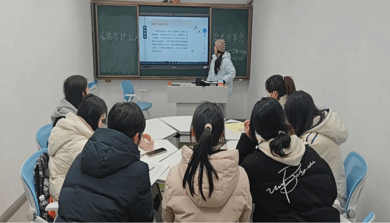本网讯(记者 田九余)为培育勤学善思的班级学风,深挖经典文学作品中的深度内涵,3月6日晚,思政2301班于微格教室106、107开展新学期第一次读书分享会。杨心仪和邓甜同学分别担任《活着》与《我与地坛》的主分享人。
