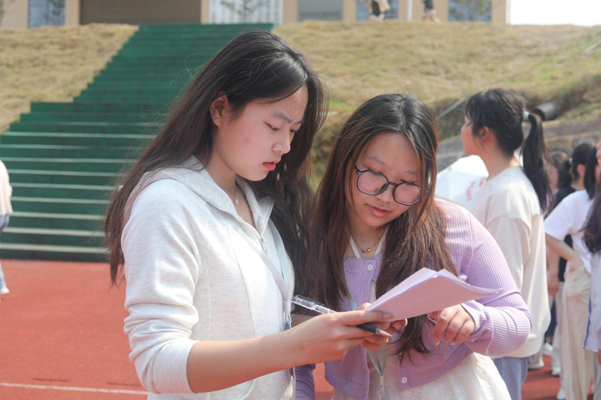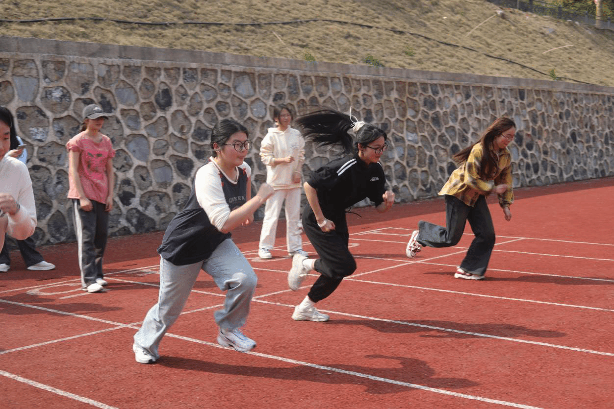 本次活动打破传统学习模式,在4×50米接力跑中融入答题环节,将“体育”与“智育”相融合。参赛学生以4人小组为单位,每棒选手需在接力区抽取题目,答对后方可继续传递接力棒,这一设计不仅考验团队协作与体能,更强化了同学们对党史知识、二十届三中全会精神、2025年两会精神的学习,现场气氛紧张而热烈。
