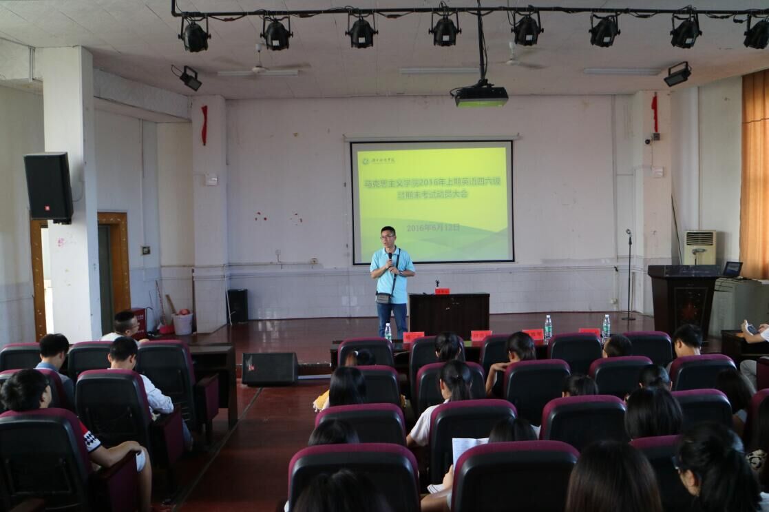 本网讯(记者 皮妍)为培养优良学风,积极推进学校学风建设年活动,6月12日下午,马克思主义学院2016年上期英语四六级暨期末考试动员大会在博雅楼东三举行。学院全体同学参加本次动员大会。。