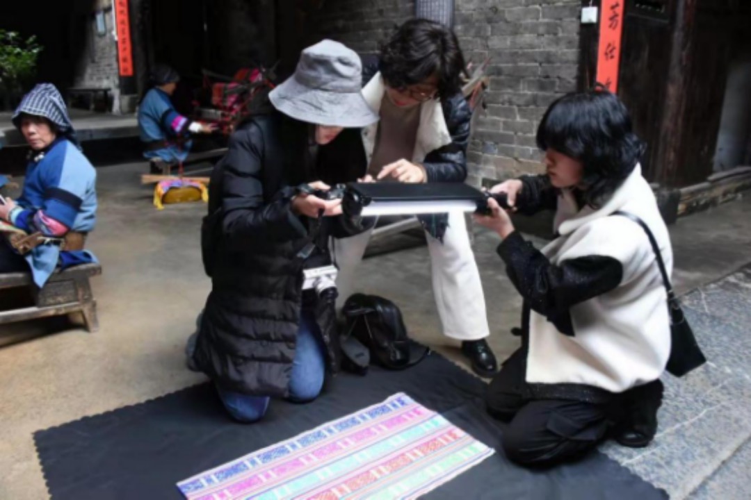 文化振兴是乡村振兴的铸魂工程,文化在乡村振兴中具有不可替代的重要作用,此次考察的主要目的是挖掘江华地方特色产业,传承江华瑶族文化,通过全面采集整理瑶族织锦工艺样式,深入企业、商户、职校、非遗传承研习基地,充分了解瑶族织锦的产业需求、用户需求和从业者需求,后期对瑶族织锦进行产品精准分析与定位,以及利用高校强大的文创产品开发能力,为瑶族传统手工艺传承提供技术和服务创新方面的支持。在活动中,一方面,学院鼓励更多的青年学子积极参与,深入乡村开展公益实践行动,引导同学们用创意与创新改变乡村,另一方面,乡村实践又对学生的思想和心灵起到启迪的作用,形成良好的双向互动,以此构建米兰官方端网页版视觉传达设计专业“创意+创新+创业”深度融合人才培养新模式。