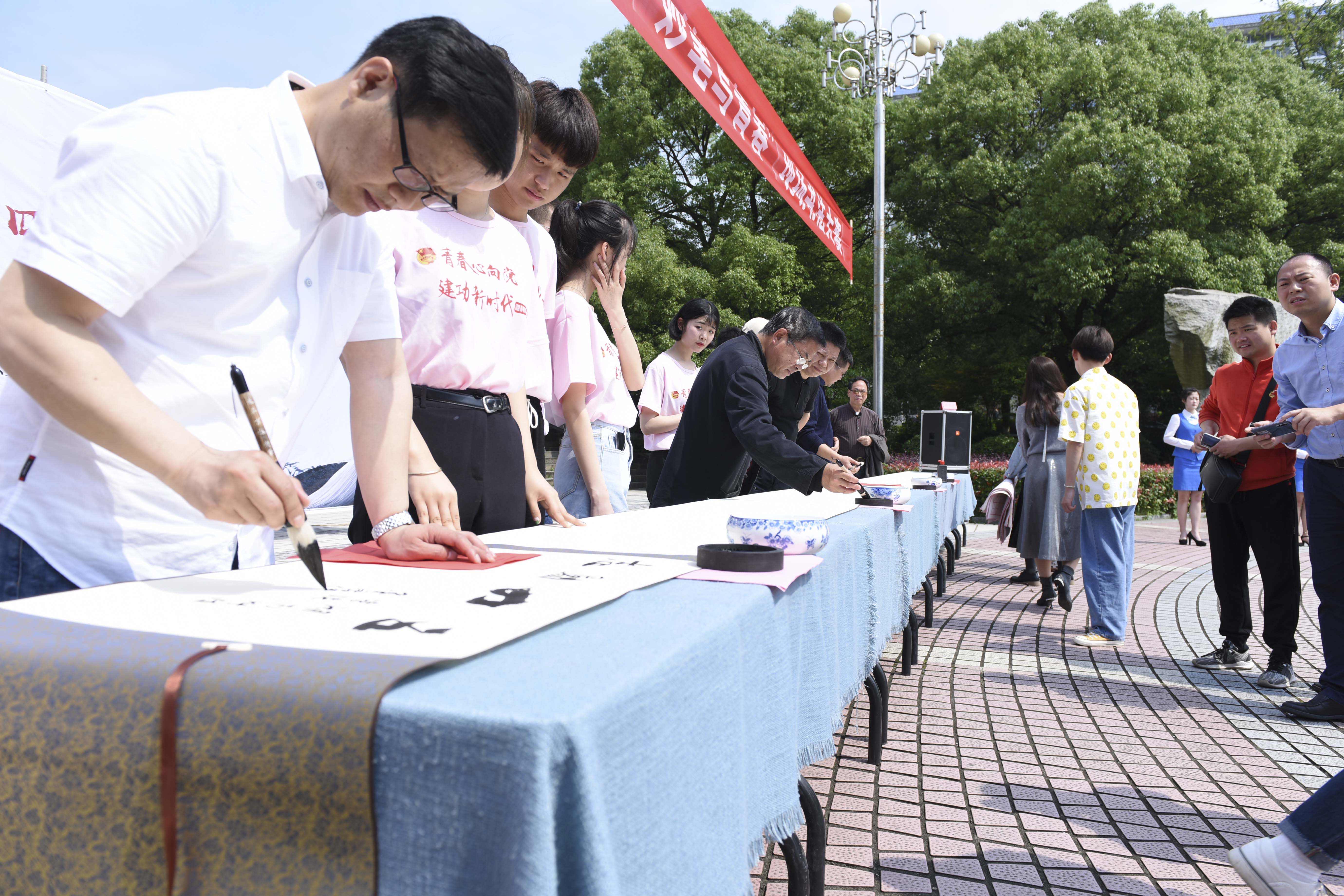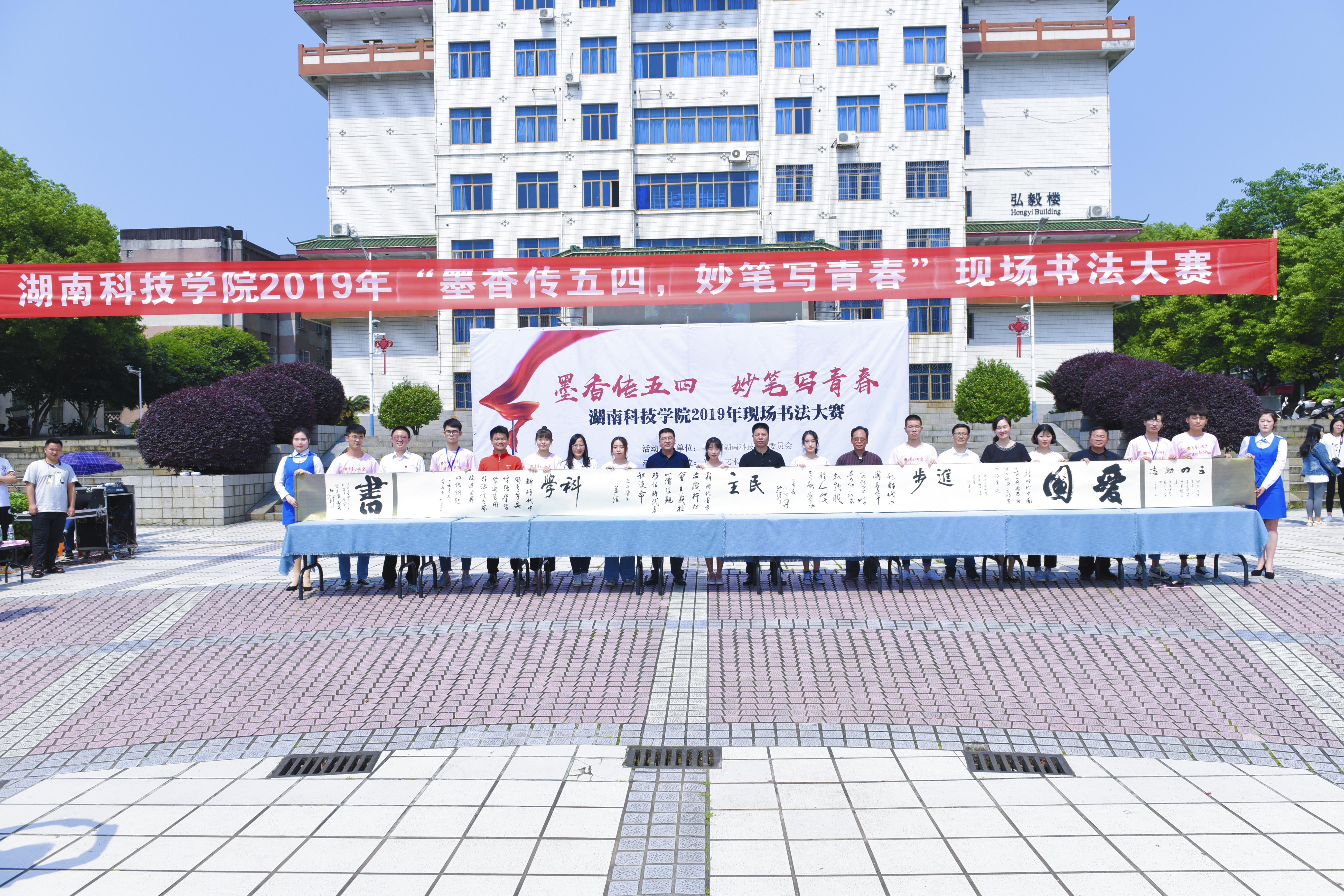 本网讯(通讯员:谢玖兰 韩嘉雯)2019年5月11日上午,为纪念五四运动100周年,深入学习宣传贯彻习近平新时代中国特色社会主义思想,弘扬和传承“爱国、进步、民主、科学”五四精神。米兰官方端网页版于校文化广场举行以“墨香传五四,妙笔写青春”为主题的现场书法大赛活动。副校长程智开、中国书法协会会员刘建平、永州市书法家协会第一届主席黎笃田、永州市书法家协会副主席宋运清、校书法协会会长唐幼铎等省内知名书法大伽莅临大赛现场。本次大赛由共青团米兰官方端网页版委员会主办,美术与艺术设计学院承办。