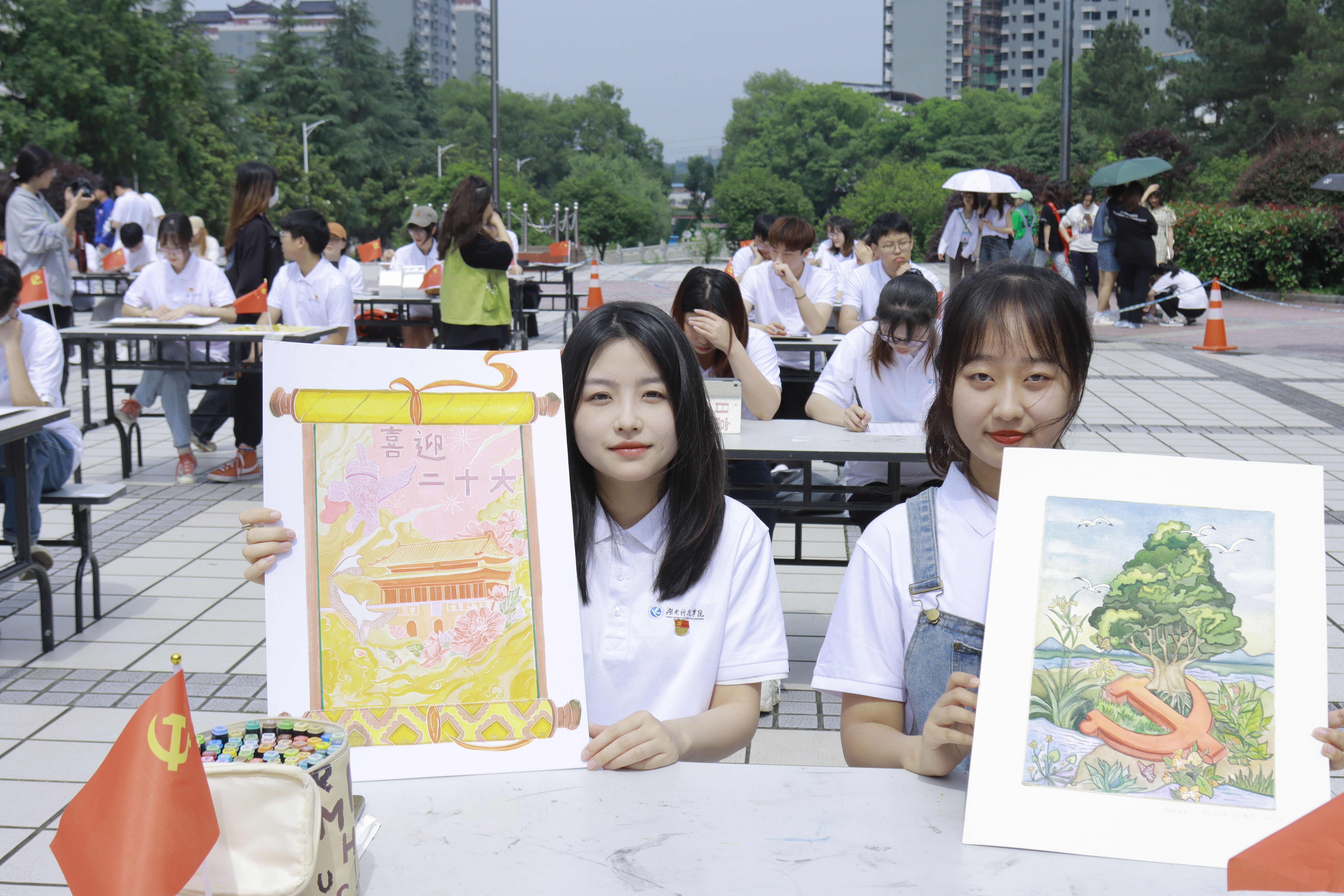 本网讯(通讯员:卿可青)5月17日下午,我院举办“喜迎二十大·永远跟党走·奋进新征程”现场书画设计大赛。校党委委员、副校长吴小林,校团委书记万李、美术与艺术设计学院院长张建利、党总支书记刘华出席活动,来自全校的600余名学生齐聚大赛现场竞亮才艺。