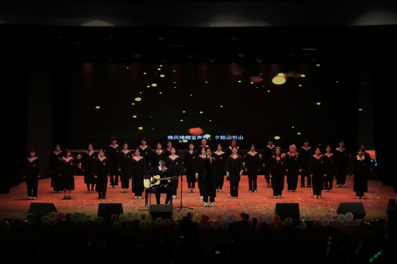 毕业晚会上,院长张健利致辞,希望毕业生始终坚守敢为人先、胸怀天下的家国情怀,做走在时代前列的奉献者。本次晚会的节目类型丰富多彩,尽显青春活力的啦啦操、声情并茂的朗诵、悠扬动听的合唱、或是闲婉柔靡或是体轻如风的舞蹈、诙谐幽默的小品、明媚典雅的服装走秀、乐声朴素明亮的乐器独奏等。另外,2022届毕业班全体班主任为毕业生合唱歌曲《再见》,美院全体辅导员也为毕业生们准备了舞蹈节目《葫芦娃》,他们用表演的方式表达出对毕业生的不舍与美好祝福。
