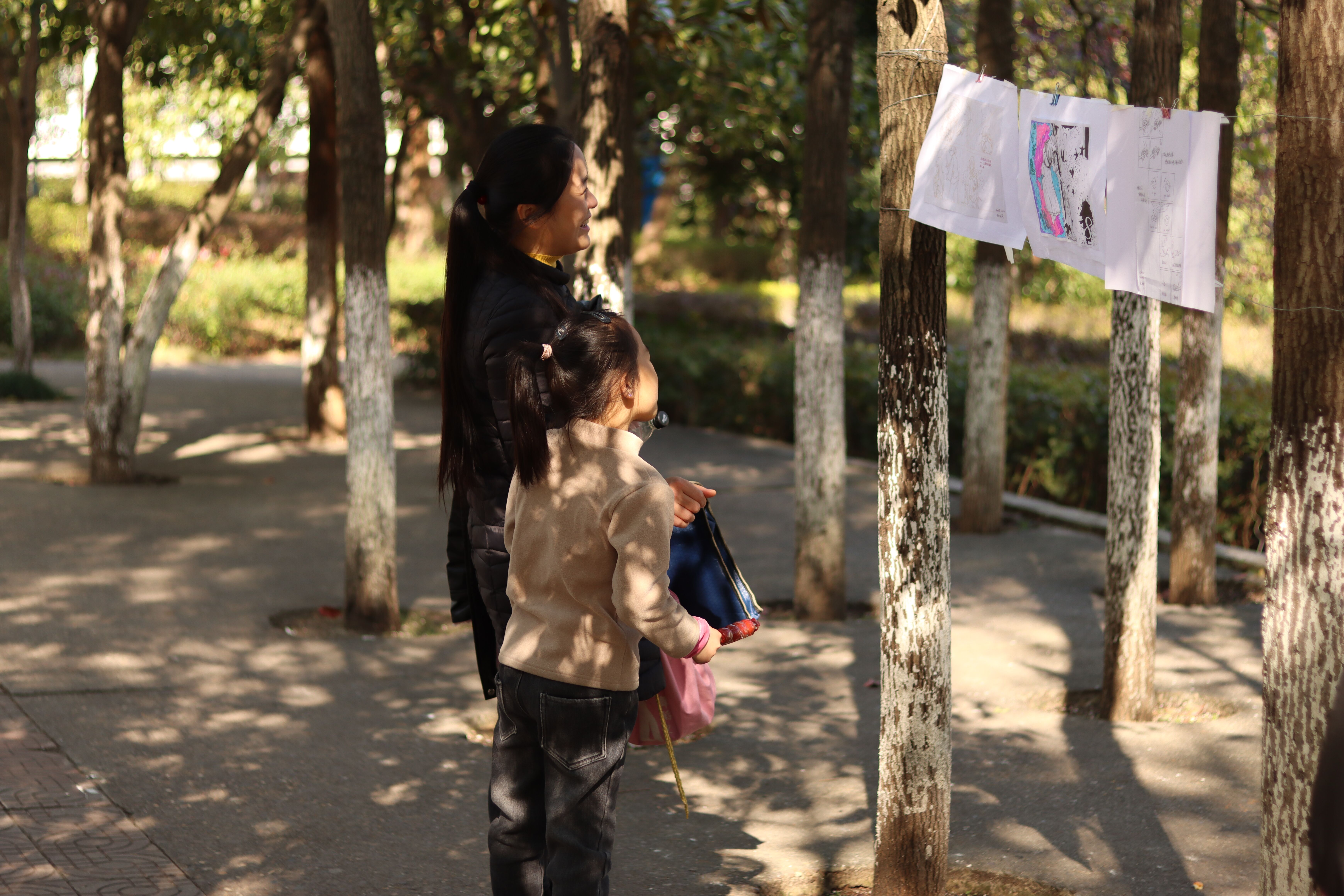 悬挂在舜德路旁小树中间的一幅幅手绘作品,引来了全校数百名师生驻足欣赏。这些作品是由美术与艺术设计学院党总支书记刘华老师所带班级的60余名学生自发创作,由院心理部承办与设计,并从中挑选出20余幅作品进行手绘展示,驻足欣赏的师生们观看着一幅幅精美独特的手绘作品,不自觉地掏出手机进行拍摄并记录,感受着这些手绘作品所带来的“心灵粮食”。