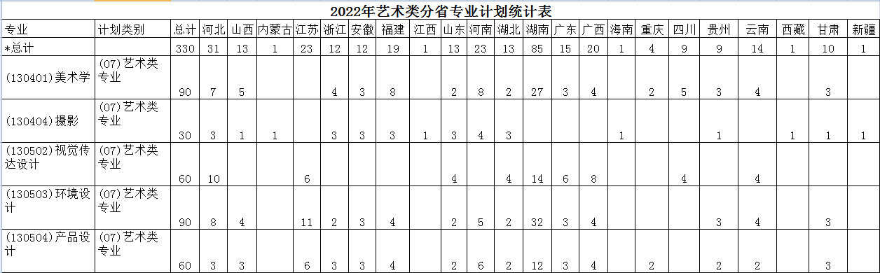2022年艺术类分省专业计划统计表