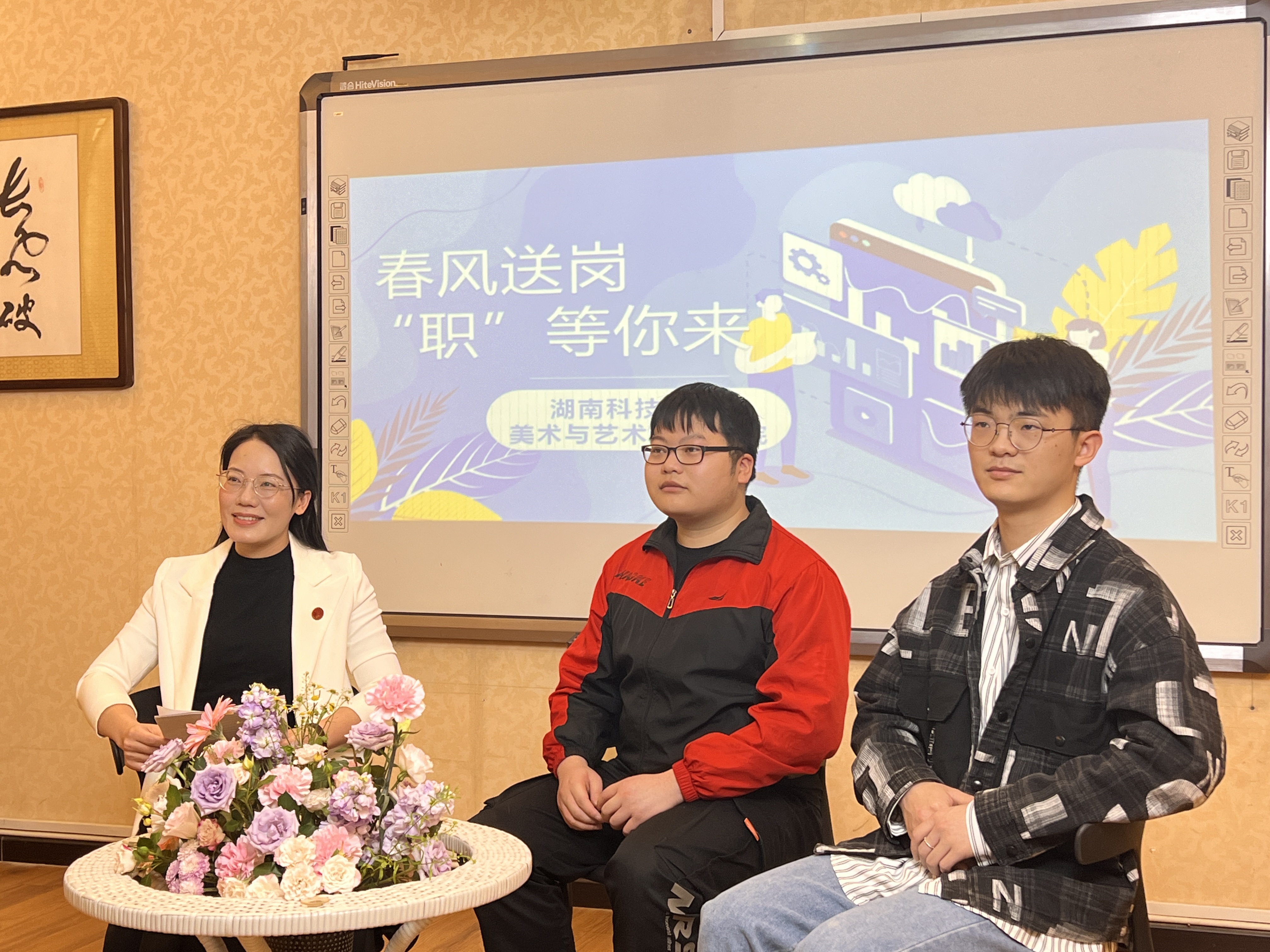 本网讯(通讯员 卿可青)2022年4月14日上午10时30分,米兰官方端网页版美术与艺术设计学院联合6家优秀校友企业在南楼202举行“春风送岗·‘职’等你来”线上直播招聘会。本次招聘会现场由美院党总支书记刘华主持,6名毕业生代表参与互动,线上有150余名学生进行观看。
