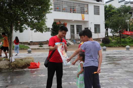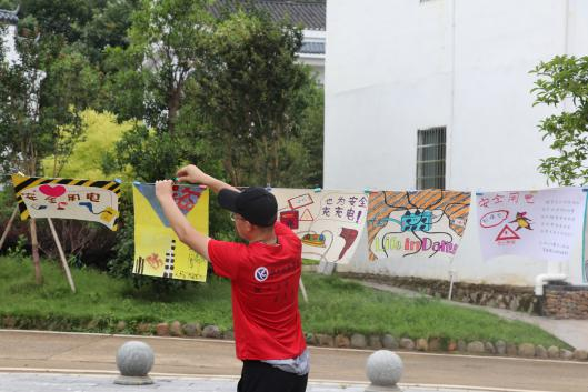 美院志愿者充分发挥自身优势,用图文并茂的方法向村民详细介绍农村易存在的问题。如电路老化、农村防盗、儿童防溺水、防诈骗的问题等。