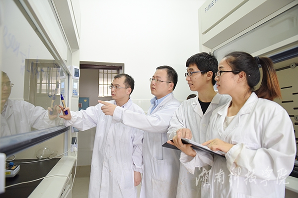 开展科研工作的同时,团队也不忘对学生的培养。科研团队积极吸纳优秀学生作为科研助理,让对科学研究有兴趣的学生参与到研究工作中,不仅开阔了学生的科学视野,培养了学生的科研技能,而且使学生把抽象的理论知识运用到学科的前沿研究中,进一步加深了专业知识的理解。在2016年湖南省化学实验技能竞赛中,科研团队中的李寒俏同学,唐玲同学分别取得了省级一等奖和二等奖。何卫民博士指导的大学生研究性学习和创新性实验计划更是获得省教育厅立项。