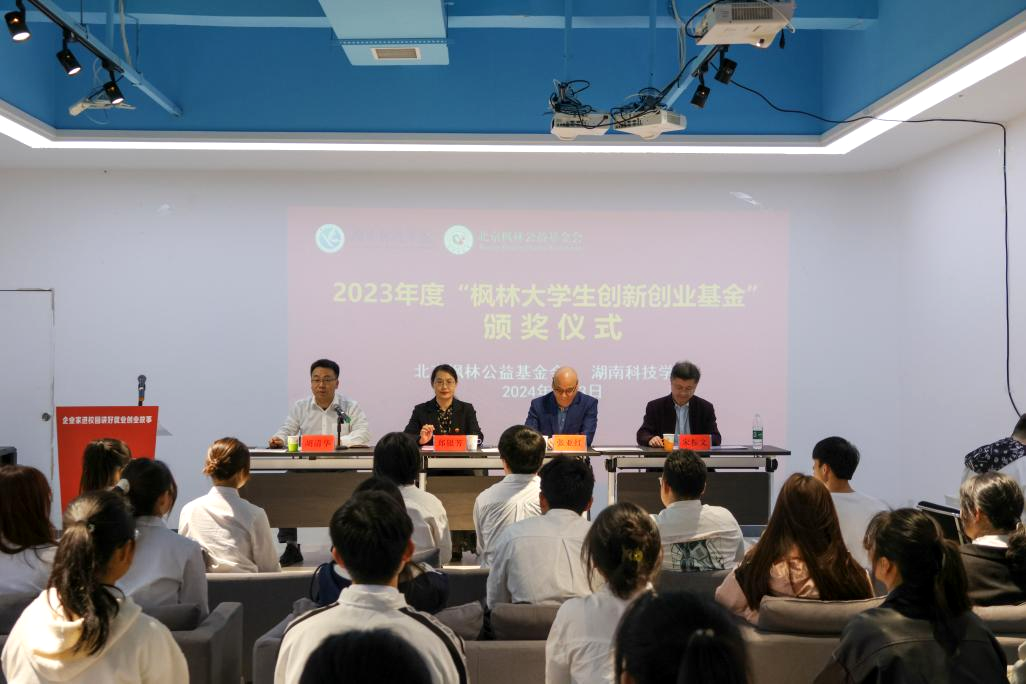 本网讯 为贯彻省委、省政府关于推进“校友回湘”工作的决策部署,落实省教育厅“企业家进校园讲好就业创业故事”活动部署要求,营造浓厚创新创业氛围,4月3日下午,我校举行“枫林大学生创新创业基金”颁奖仪式暨企业家进校园讲好就业创业故事活动。我校77级校友、北京枫林公益基金会会长张亚红,副校长郑银芳出席。