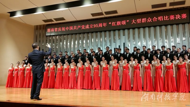 本网讯(通讯员 方新佩)6月29日上午,由湖南省文化厅主办的“红旗颂”大型群众合唱比赛决赛在省文化馆音乐厅举行。我校音乐与舞蹈学院合唱队以复赛第一名的好成绩代表永州市参加决赛并荣获金奖。