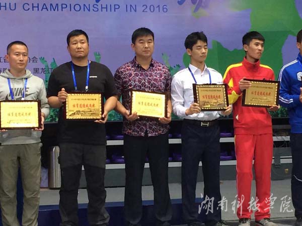 此次比赛由中国大学生体育协会主办,黑龙江省伊春市教育局、体育局承办。共有来自清华大学、北京体育大学、中国人民公安大学等全国58所高校,500余名运动员角逐男子9个级别、女子5个级别项目的奖牌。我校参赛选手在56KG 、60KG 、75KG级别比赛中获奖,刘剑老师获“优秀教练员奖”。
