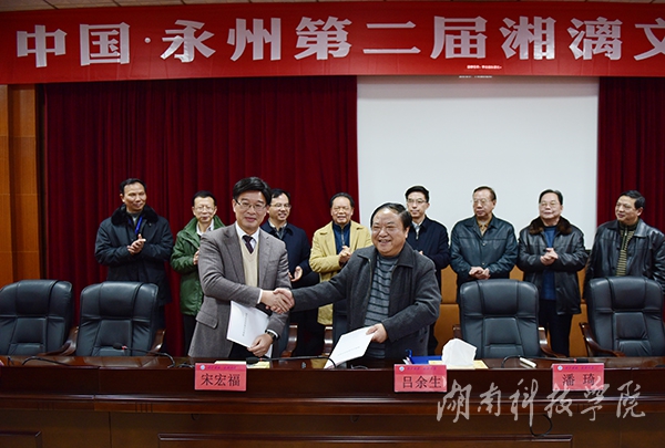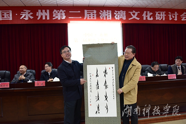 广西壮族自治区党委原副书记、广西桂学研究会会长潘琦,永州市委常委、市委宣传部部长石艳萍,广西社会科学院院长、党组书记、广西桂学研究会副会长吕余生,广西文联党组书记、主席洪波,广东省文艺评论家协会主席、广东省作协主席、暨南大学原党委书记博士生导师蒋述卓,广西文联原党组副书记、副主席、广西桂学研究会副会长黄德昌,原湖南省社科联执行主席、湖南省舜文化研究会副会长陆魁宏及我校校党委书记、永州市历史文化研究会会长陈弘,校党委委员、副校长宋宏福,副校级督导、工会主席、湖南省舜文化基地首席专家陈仲庚等出席。