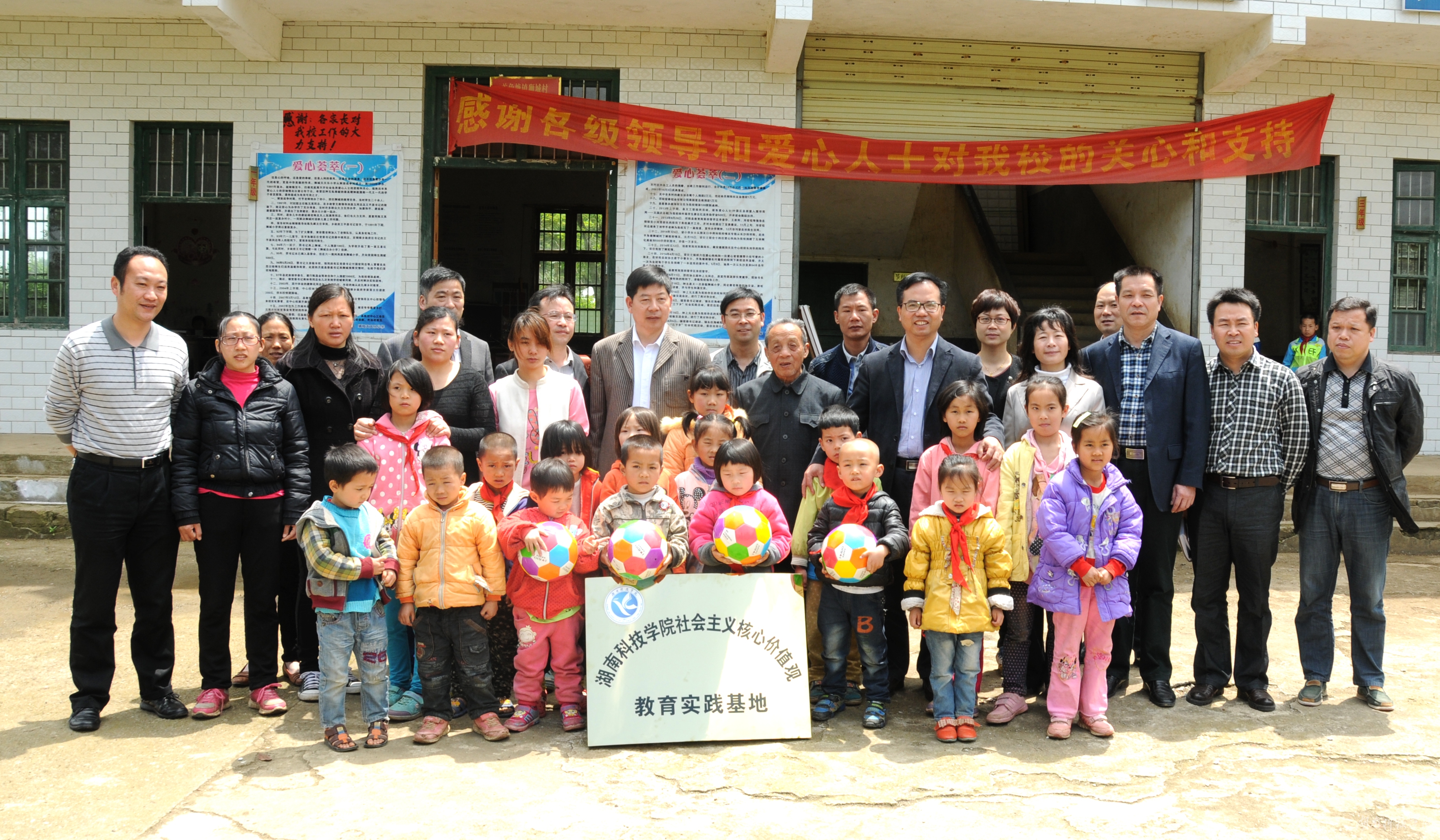 陈弘深情地说,“唐延禄老人祖孙三人扎根基层、坚守教育的理念着实让人感动和敬佩,全校师生要以天天乐小学的老师们为榜样,脚踏实地践行社会主义核心价值观,努力在岗位上建功立业。”他表示我校将长期、定点为天天乐小学提供支持。随后,陈弘与该校校长陈文英共同为“米兰官方端网页版社会主义核心价值观教育实践基地”揭牌。他还高兴地与孩子们、老师们合影留念。