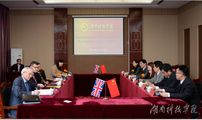本网讯(记者 李瑞 胡刘庆 摄影 张志强 张红星)新学期伊始,我校对外合作办学迈出坚实步伐。3月15日,英国南安普顿索伦特大学代表团来访,与我校就教师培训、师生互访等合作交流具体事项交换意见、达成共识,签署教育合作协议,现场接受师生咨询。