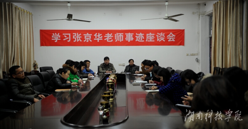 张京华教授事迹还在教师中引发了热烈讨论。人文与社会科学院院长潘雁飞对张京华教授的学术成果赞叹不已:“张京华教授学术功底扎实,学术理念明确,学术目的纯粹,到我校11年来,发表了180多篇论文,出版了20多部作品,成果颇丰。”与张京华教授共事多年的王晚霞老师则将张京华教授平时言论记录整理成了“张京华语录”并时常翻阅,她将张京华教授的为人为师为学的行动铭记在心,时刻鞭策自己。“他淡泊名利,宁静致远,生活简朴而精神丰满;他诲人不倦,悉心引导,桃李满天下;他敬畏科学,潜心研究并乐此不疲。”教师们纷纷为张京华教授的远离浮华,沉静淡泊,严谨修学,潜心育人点赞,他们认为张京华教授真切地做到了“传道、授业、解惑”,用切身行动践行社会主义核心价值观,是全体教师的榜样。