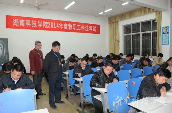本网讯(实习记者 胡蕊蕊)为全面提高我校教职工的法律意识和法律素质,为进一步推动我校依法治校工作的深入开展,根据湖南省教育工委下发的《关于组织全省高校教职工2014年度学法考试的通知》文件要求,近日,学校组织全体教职工在日新楼进行了2014年度学法考试。