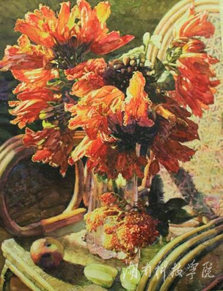 本网讯(通讯员 郑适)近日,由湖南省文化厅、省文联、省美协联合主办的第十二届全国美展湖南展区——湖南省优秀美术作品展在省展览馆举行,展览现场共展出800余件美术作品,我校教师共入选14件美术作品,其中由郑适、杨球旺、黄海波共同创作的版画《在希望的田野上》,唐长安、谢筱冬合作的水彩画《霜降深秋》获铜奖;王硕的水彩画《火焰花开》获优秀奖。
