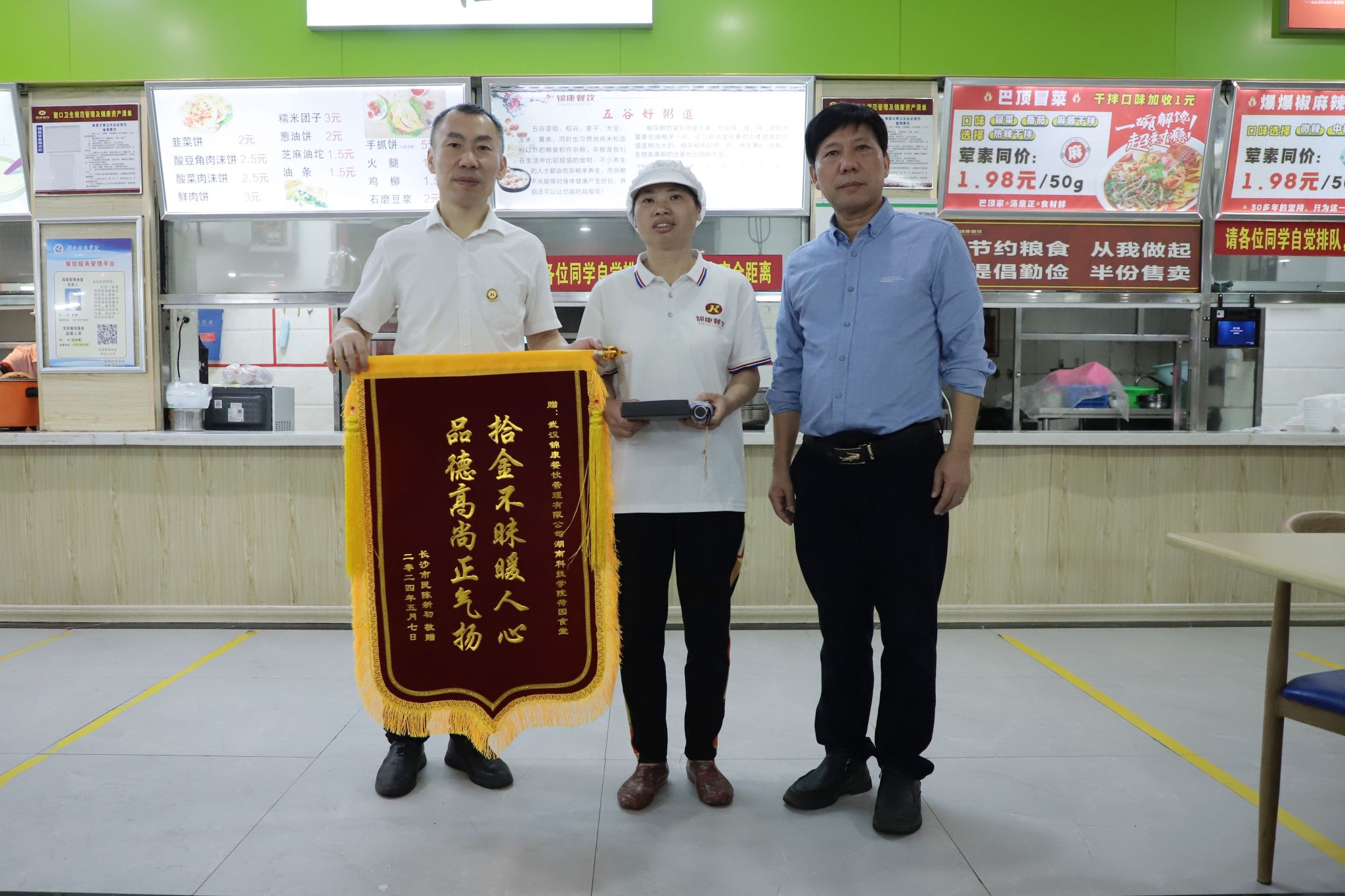 5月2日,长沙的陈先生来永州旅游,在荷园食堂吃早餐时不慎把装有银行卡、身份证和现金的钱包丢失了,食堂员工蒋冬梅在打扫卫生时发现了钱包,“这些贵重物品丢了,失主一定很着急。”她第一时间上报负责人,对遗失物品进行保管,并通过查询现场监控寻找失主,经多方查询,联系上失主,在核对了物品和金额后,将钱包妥善归还给了失主。