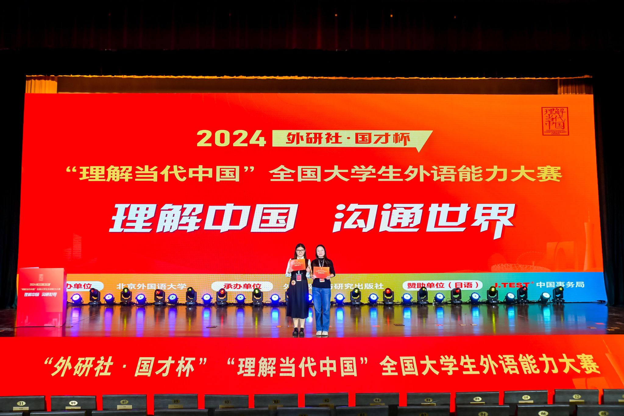 本网讯(通讯员 宋琳 张云芳)12月7日,2024外研社·国才杯“理解当代中国”全国大学生外语能力大赛全国总决赛落幕,我校外国语学院日语专业学生于璟以第6名的成绩与北京外国语大学、北京大学等高校学子同台荣获日语组赛道的10项金奖。