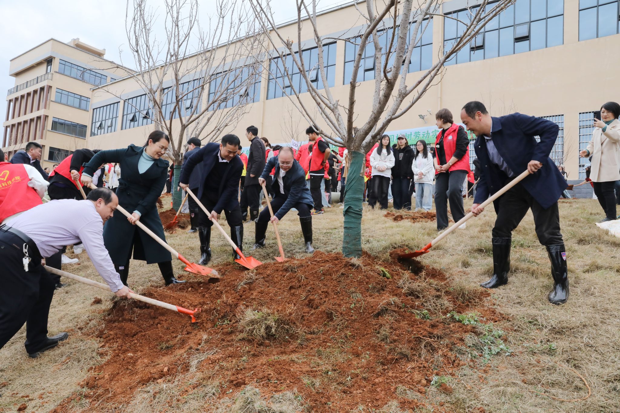 本网讯(记者 谷利梅 向玉珍 向薛峰 摄影 谢志豪)春潮涌动催人进,绿意盎然正当时。3月11日下午,校党委书记李钢,党委副书记、校长黄创霞等全体校领导、党委委员与部分师生代表来到工程实训中心侧面空地,开展“躬身植新绿,勤耕育新人”志愿植树活动,以实际行动为学校厚植绿色底蕴。