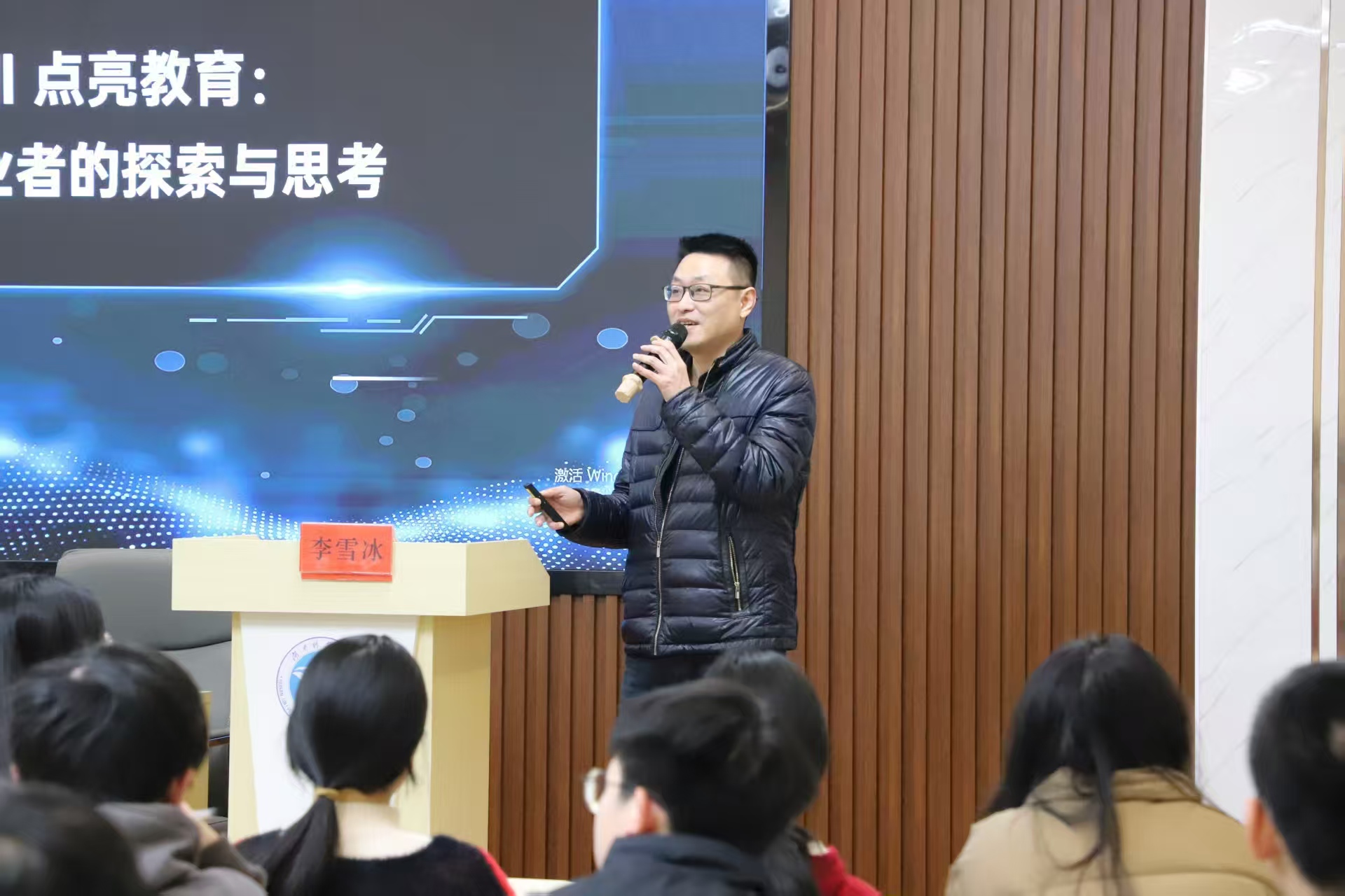 李雪冰结合自身从技术研发到企业运营的实践经验,深入浅出地剖析人工智能技术对教育行业的革新作用。通过展示AI自主学习系统、基于大数据的个性化学习等案例,生动诠释了“AI+教育”的实践路径,并就AI教育产品的用户需求等关键问题与现场同学展开剖析探讨。