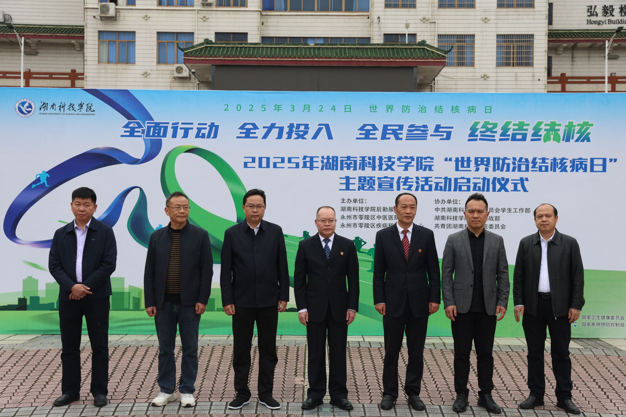 本网讯(记者 谷利梅 摄影 温百石 何佳 张倍嘉)3月18日下午,我校在舜德广场开展“世界防治结核病日”主题宣传活动,永州市零陵区中医医院党委书记唐爱民,副院长庄凯印、唐诚,永州市零陵区疾病预防控制中心纪检书记唐冰清,校党委委员、副校长何海,党委委员、组织部部长杨涛出席活动,学生工作部部长谷利民、后勤服务中心主任刘东方参加活动。
