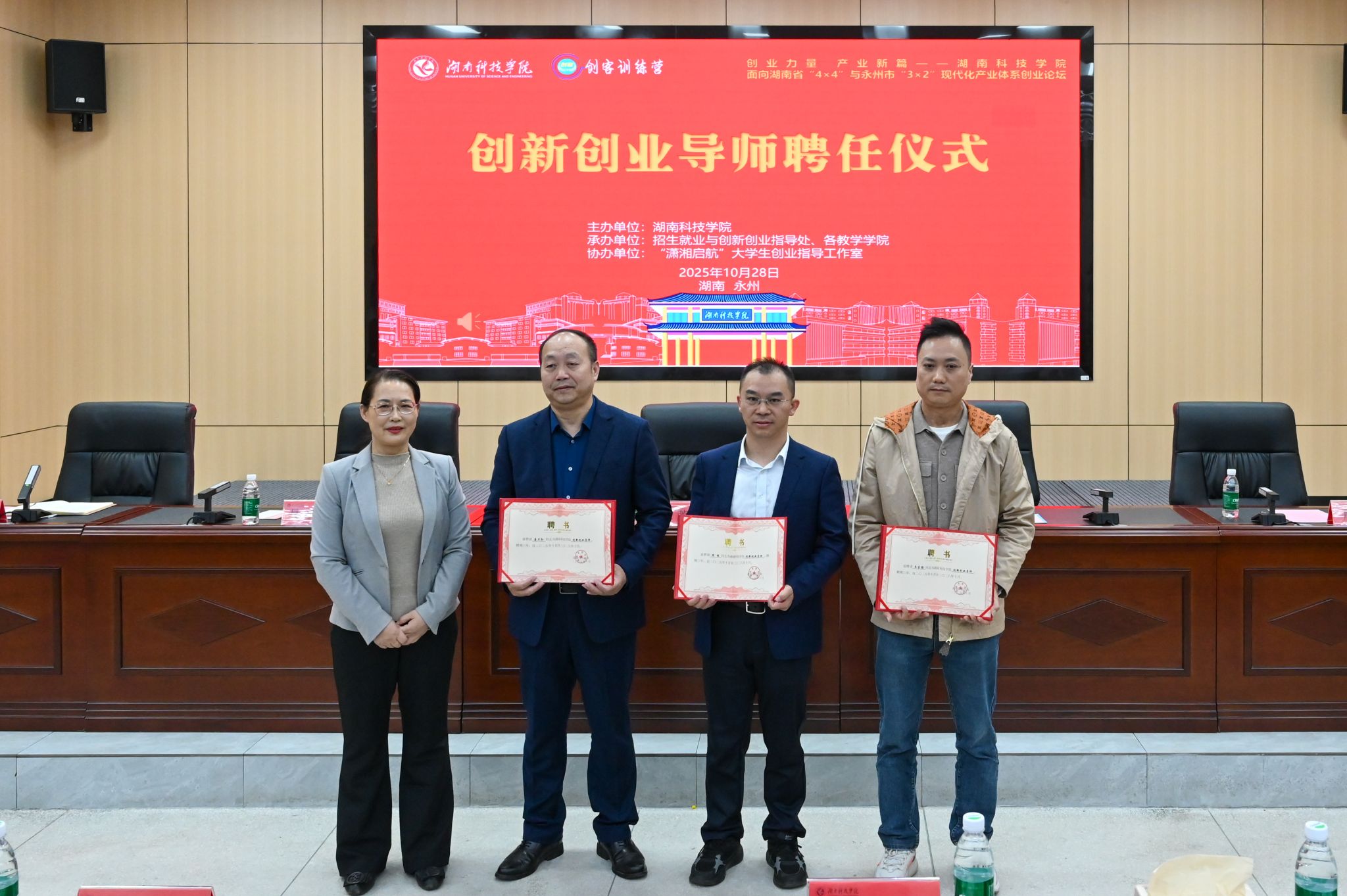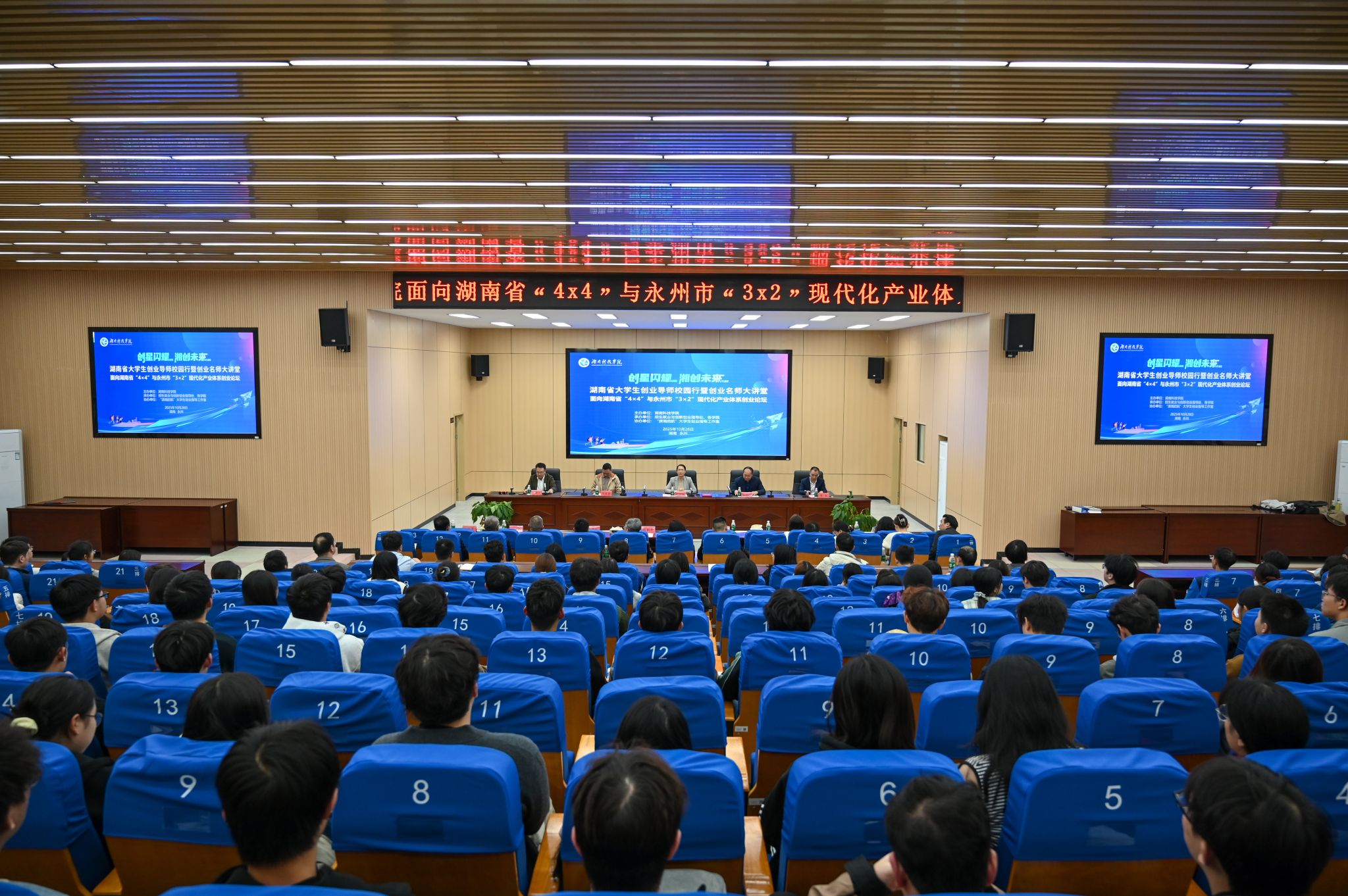 本网讯(记者 李梦雅 刘斌 摄影 杨芊澍)10月28日,为深入贯彻落实湖南省委、省政府关于支持大学生创业“七个一”行动要求,依托“潇湘启航”省级大学生创业指导工作室举办的“创业力量 产业新篇”——面向湖南省“4×4”与永州市“3×2”现代化产业体系创业论坛暨《金种子》MV发布仪式在明德楼100报告厅成功举办。论坛旨在进一步落实省委书记沈晓明来校调研重要指示精神,深化校企合作,推动大学生创新创业与地方产业需求发展。