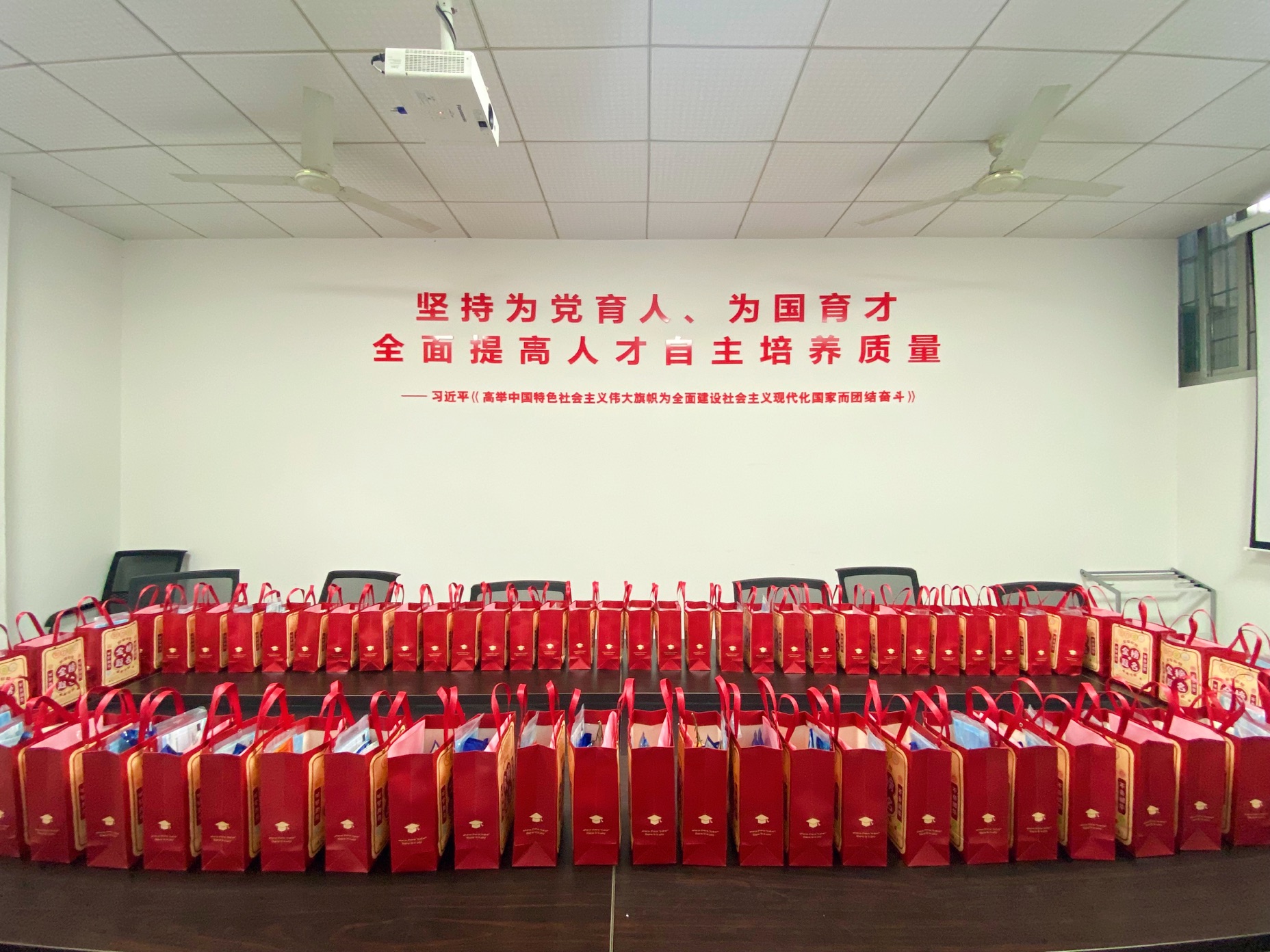 马克思主义学院的老师们来到学生寝室,叮嘱考研学子要放平心态,注意调整身体状况和心理状况,以最佳的状态去迎接考试,并为考研学子送上考研加油包,内含钥匙扣、橙子、巧克力棒、暖宝宝等物品,寓意上岸与你“环环相扣”、马到“橙”功、苹”安顺利、巧”克难题、温“暖”研途,表达学院对考研学子的美好祝愿。