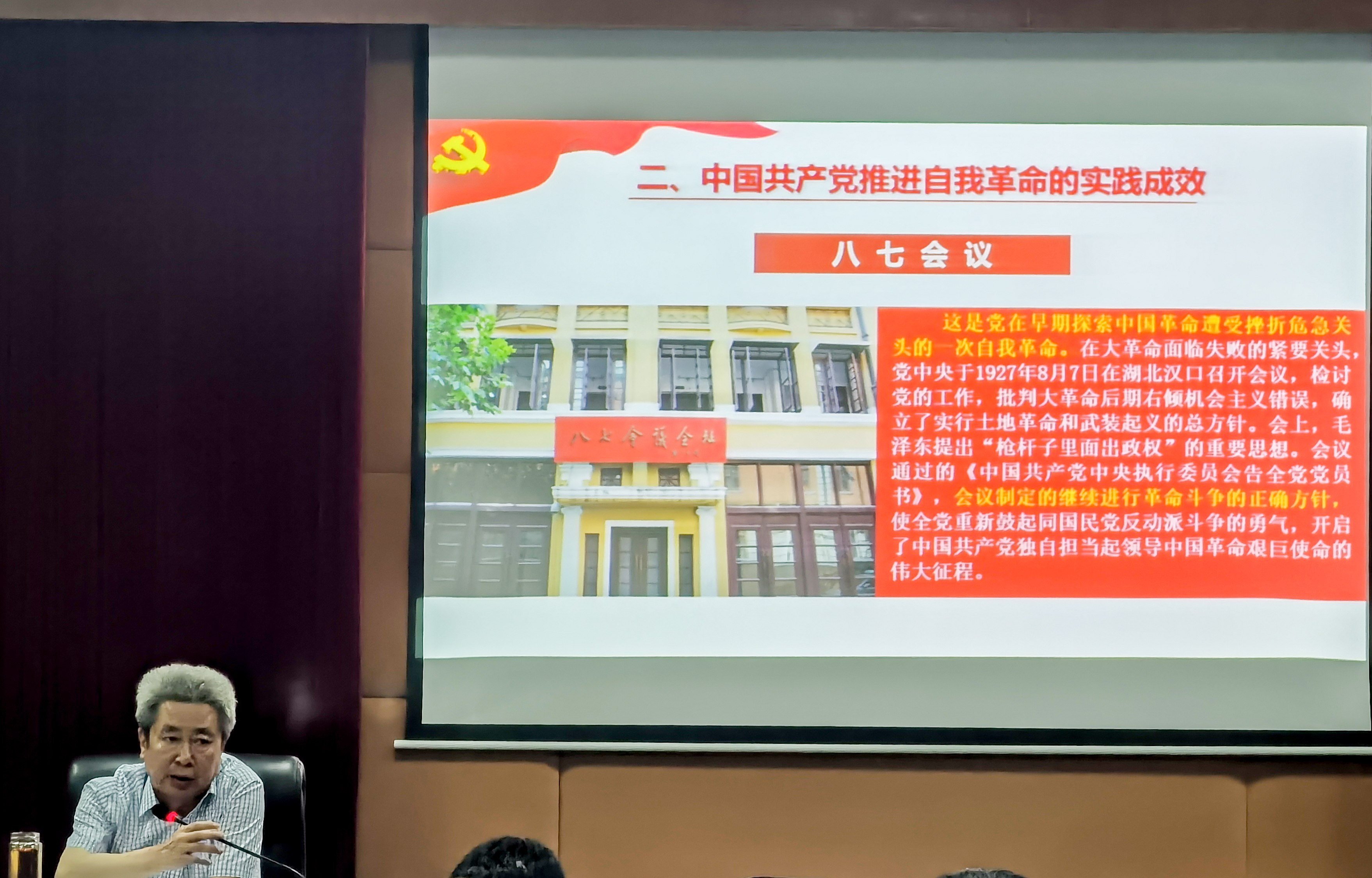 曾宝成、李钢以《加强党史学习教育 推进党的自我革命》为题,围绕“勇于自我革命是我们党最鲜明的品格”“我们党推进自我革命的实践成效和宝贵经验”“新时代把党的自我革命推向深入”三个方面,通过大量的理论分析和史实故事,引导师生进一步坚定理想信念,筑牢思想根基,充分发挥先锋模范作用,以实干献礼百年伟业,用奋斗致敬伟大时代,在赓续红色血脉中坚守初心使命。