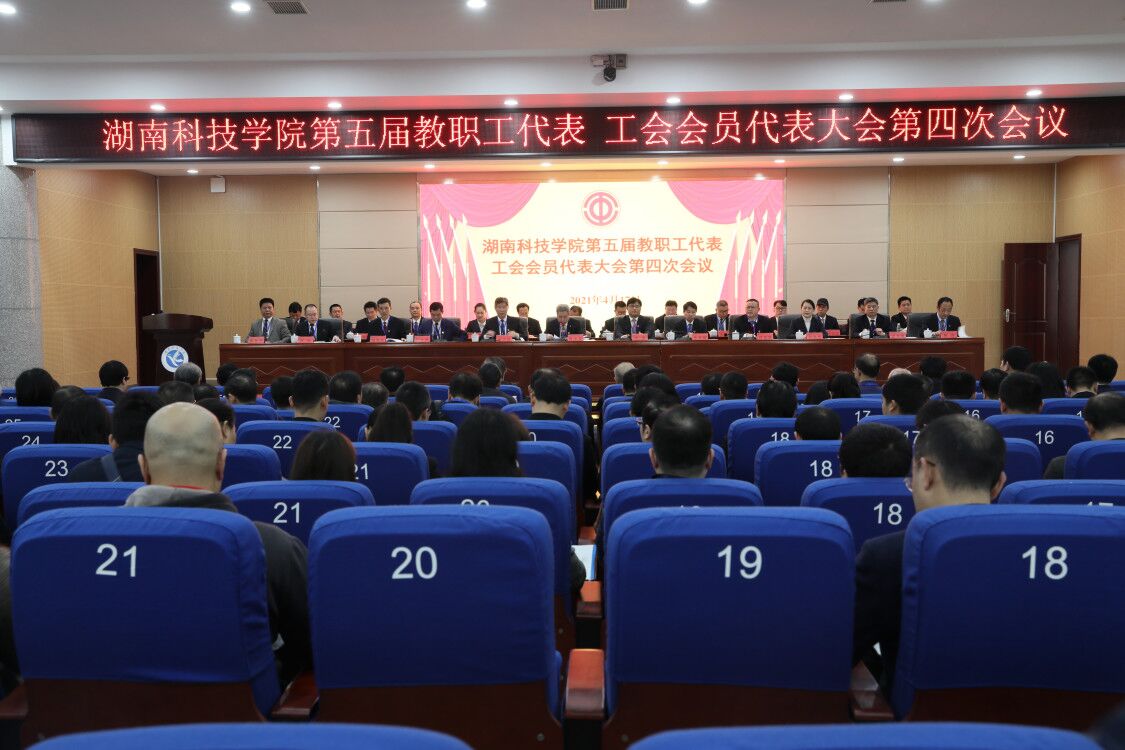 本网讯 4月17日上午,我校第五届教职工代表暨工会会员代表大会第四次会议在潇湘大讲堂开幕。两百余名会议代表、特邀嘉宾、列席代表齐聚一堂,共商改革发展大计。大会主席团主席、党委书记曾宝成主持会议。