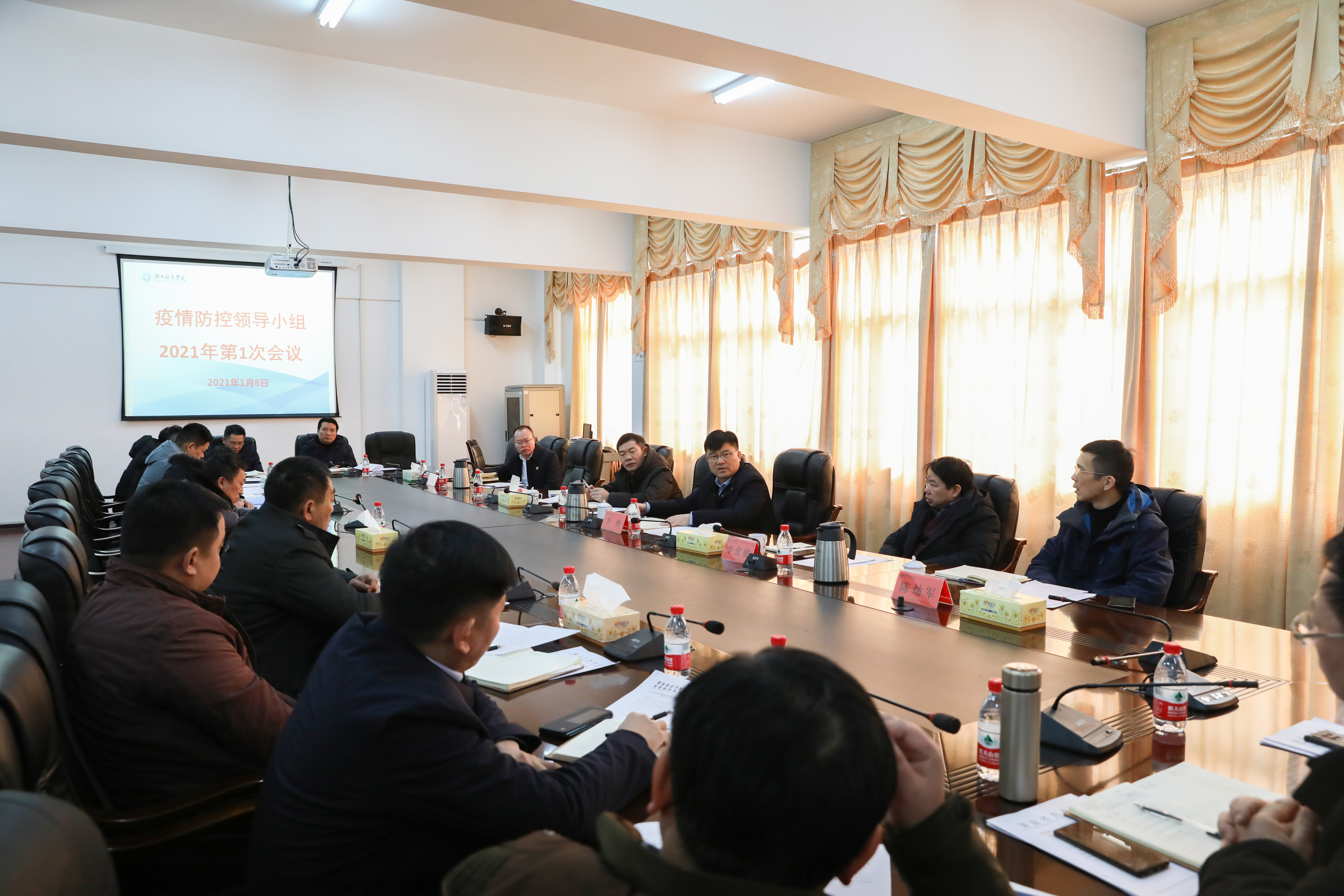 本网讯 1月8日,学校召开疫情防控工作领导小组2021年第1次会议,认真分析研判当前防控形势,研究部署学校近期及寒假校园防控工作。校长李钢,校领导李常健、吴小林、陈灿军、何海出席会议。