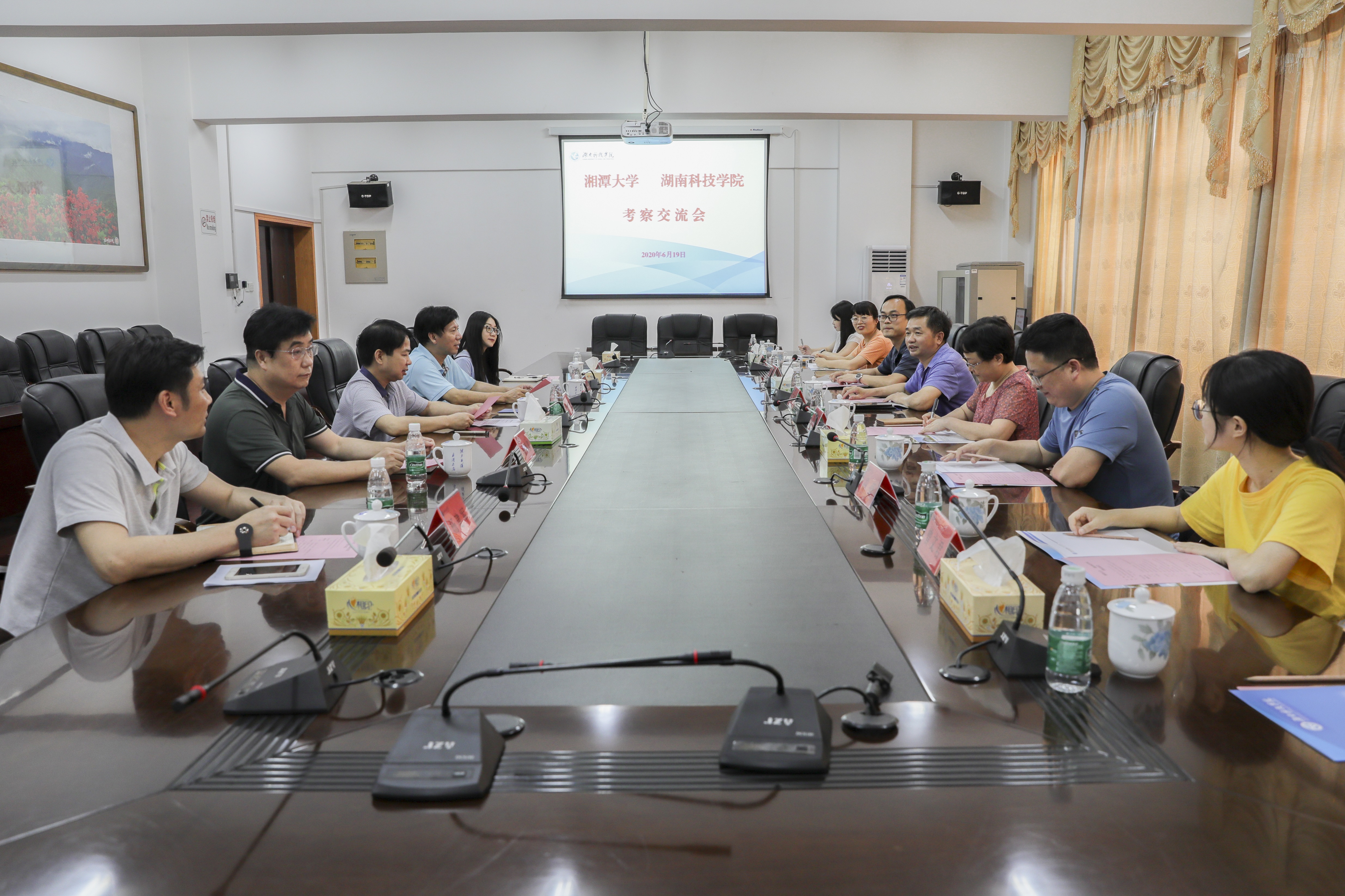 本网讯 6月19日下午,湘潭大学党委教师工作部部长、教师教学发展中心主任刘稳丰,教学质量监督与评估中心主任吴红一行来校考察,并与我校相关处室开展座谈并进行对口交流。副校长李常健出席座谈会。