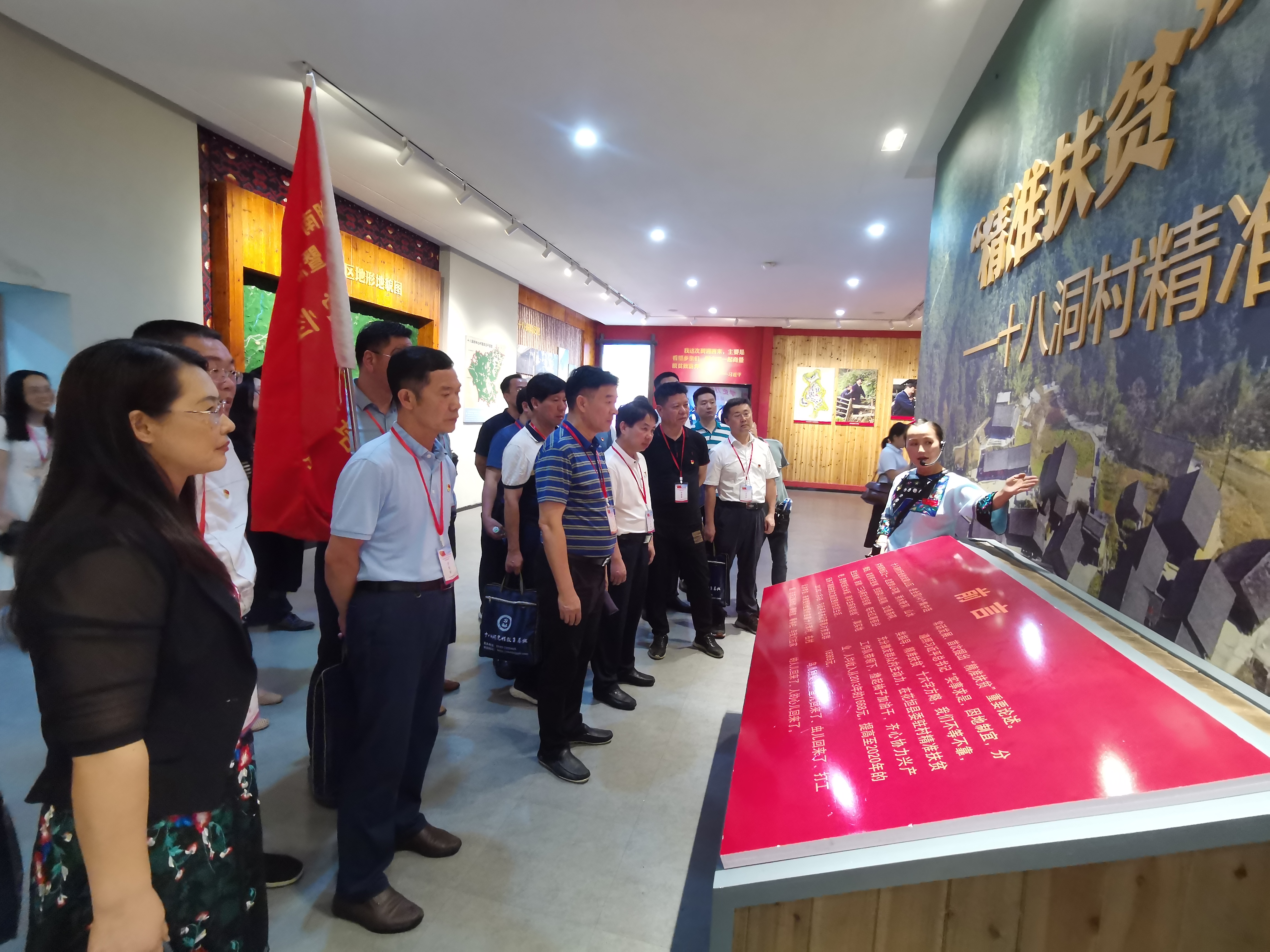本网讯 7月1日,党委书记曾宝成,校领导宋宏福、李常健、吴小林、何福林、陈灿军、郑银芳、何海与省高等学校第137期处级干部培训班80余学员沿着习近平总书记的足迹,来到精准扶贫首倡地——花垣县十八洞村,听村民讲述近年来十八洞村翻天覆地的变化,详细了解了十八洞村的村规、发展史和大事记,通过一张张精彩照片,深切体会十八洞村从精准扶贫到精准脱贫的光辉历程,领悟习近平总书记心系人民、关注民生、带领全国人民走向共同富裕的伟大情怀,在实地考察中学党史、感党恩、颂党情,接受党性教育,坚定初心使命。