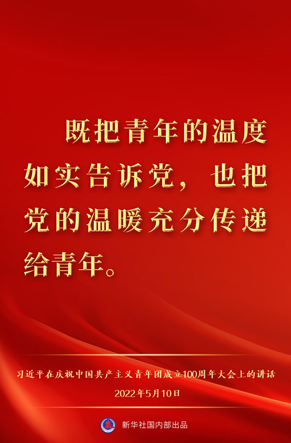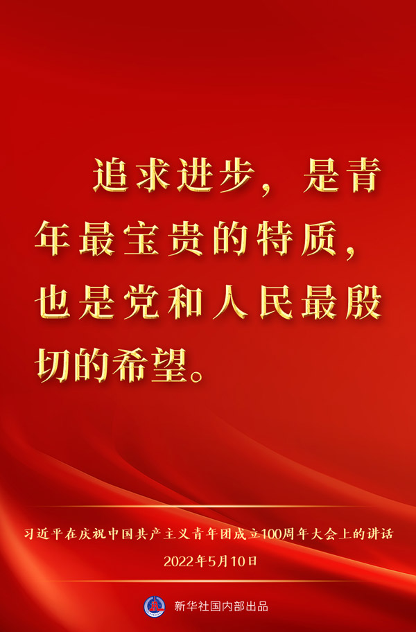 5月10日上午,中共中央总书记、国家主席、中央军委主席习近平出席庆祝中国共产主义青年团成立100周年大会并发表重要讲话,一起来看金句。