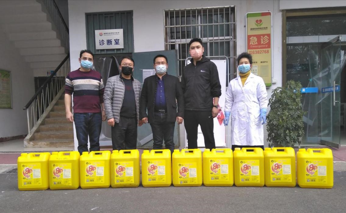 本网讯 2月24日,中文系98届校友、永州市零陵区湘妃竹生态科技有限公司总经理何鹏举向学校捐赠了10桶84消毒液,助力学校防控工作。