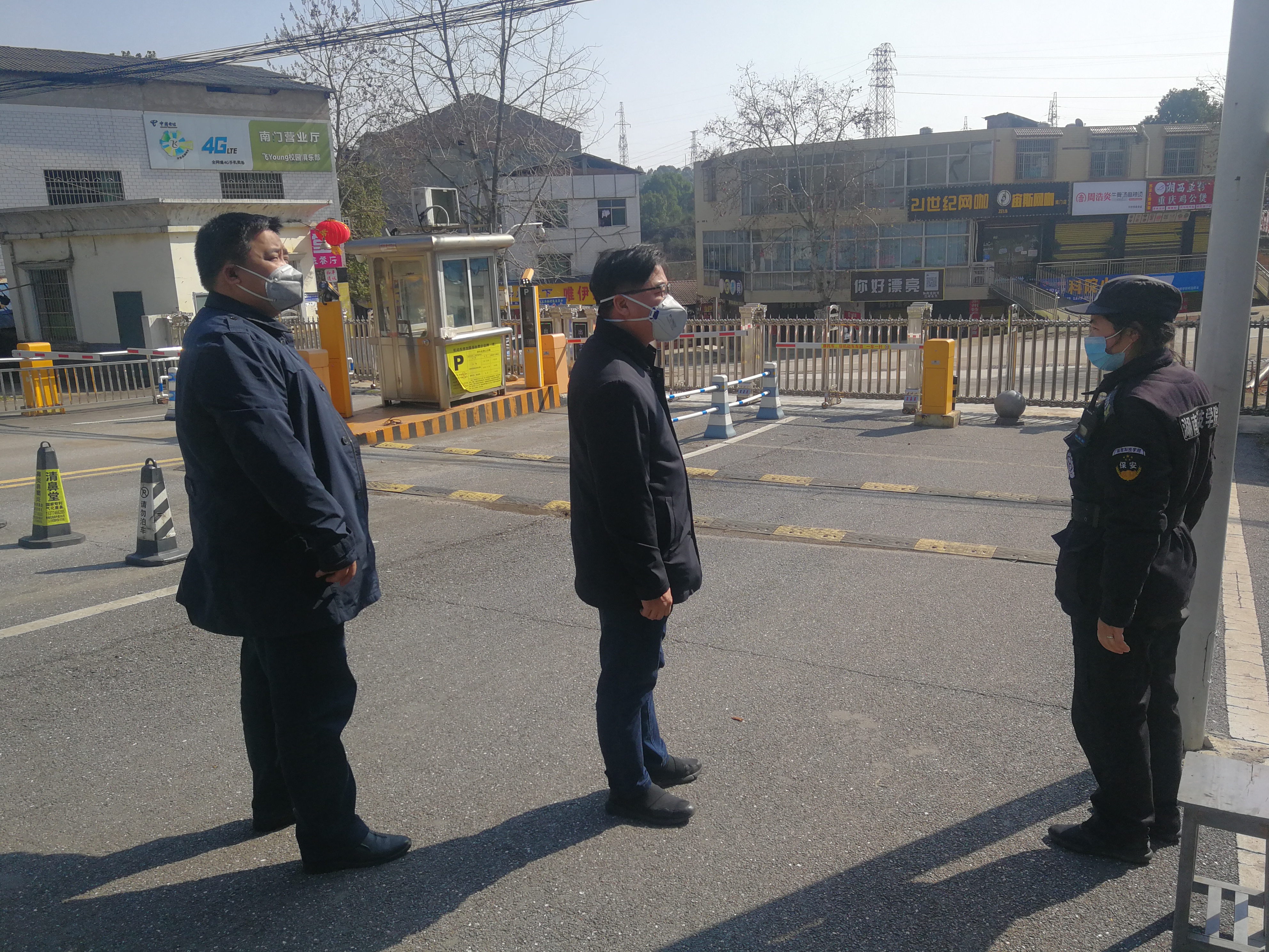 彭立威一行先后来到东大门值守点、校医院、办公楼值班室、国际生宿舍以及流动卡哨等地,详细了解各单位正职报到、带班值守以及进出学校人员控制和体温检测情况,询问了解居家观察和群防群治措施落实情况,走访看望在校国际生的生活和日常防控情况,实地察看进出校园道路封闭情况等。