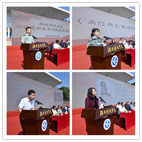 李钢宣读军训表彰文件,对音乐与舞蹈学院等5个军训工作先进单位、音乐与舞蹈学院二营二连等25个优秀连队、蒋志平等30名教官以及桃园宿舍桃三A505等70间寝室进行表彰。校领导为优秀的单位和个人颁奖。