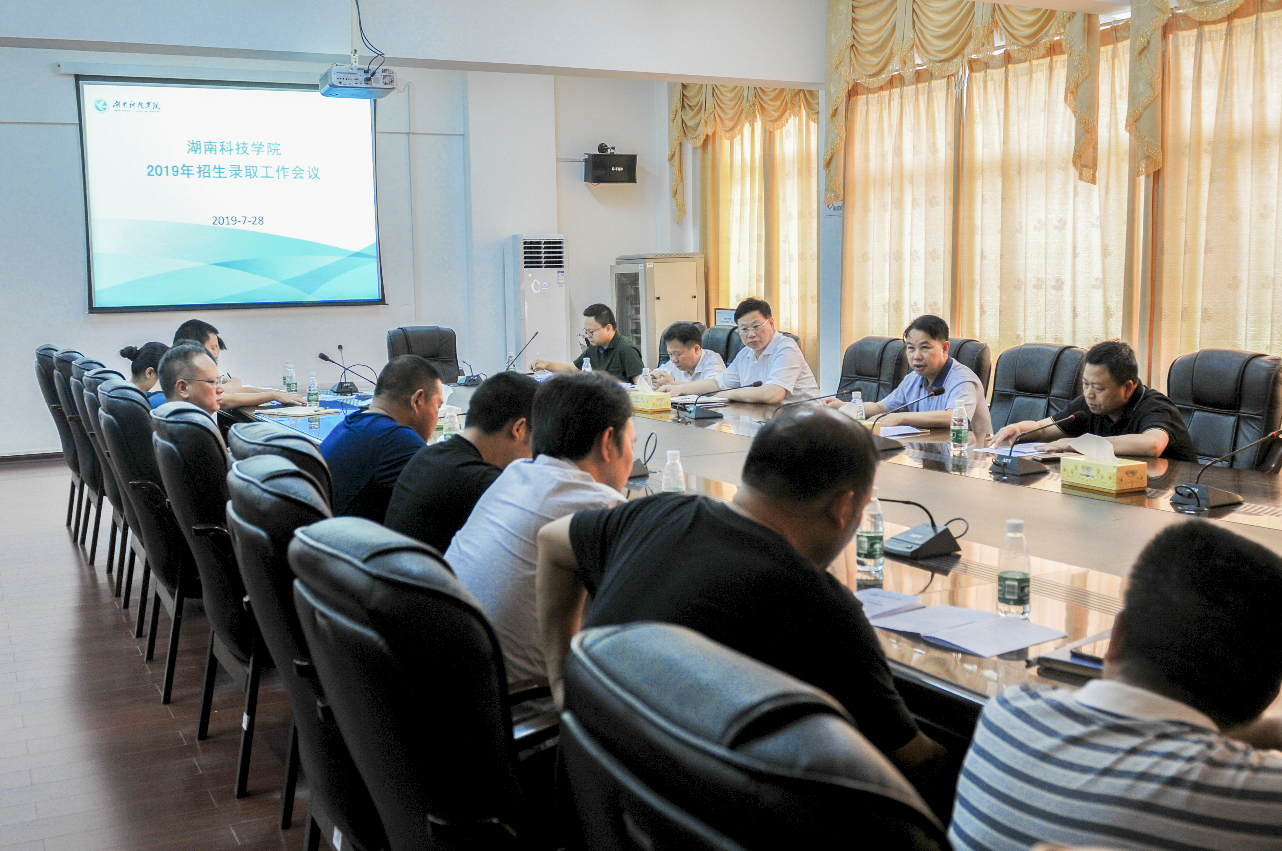 本网讯 根据湖南省教育考试院《关于做好2019年普通高等学校招生录取工作的通知》文件精神, 7月28日下午,学校召开2019年招生录取领导小组工作会议及录取工作协调会,学校招生工作领导小组全体成员、相关职能部门负责人、各院录取工作人员,会议由副校长李常健主持。