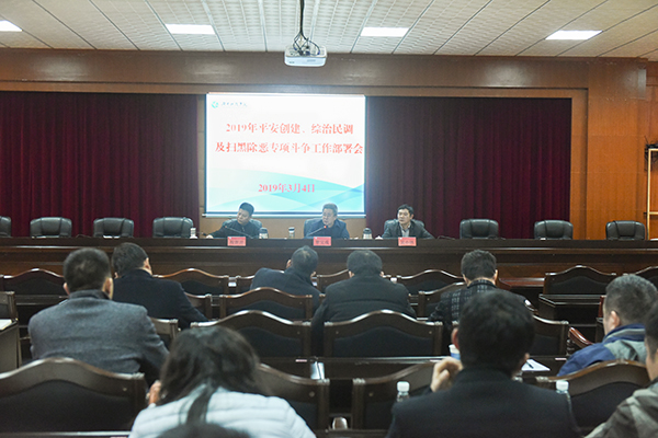 本网讯  3月4日,学校召开2019年安全工作会议暨2019年平安创建、综治民调及扫黑除恶专项斗争工作部署会。校党委书记、校长曾宝成,副校长吴小林、程智开,各职能部门、各教学学院负责人参加会议,会议由程智开主持。