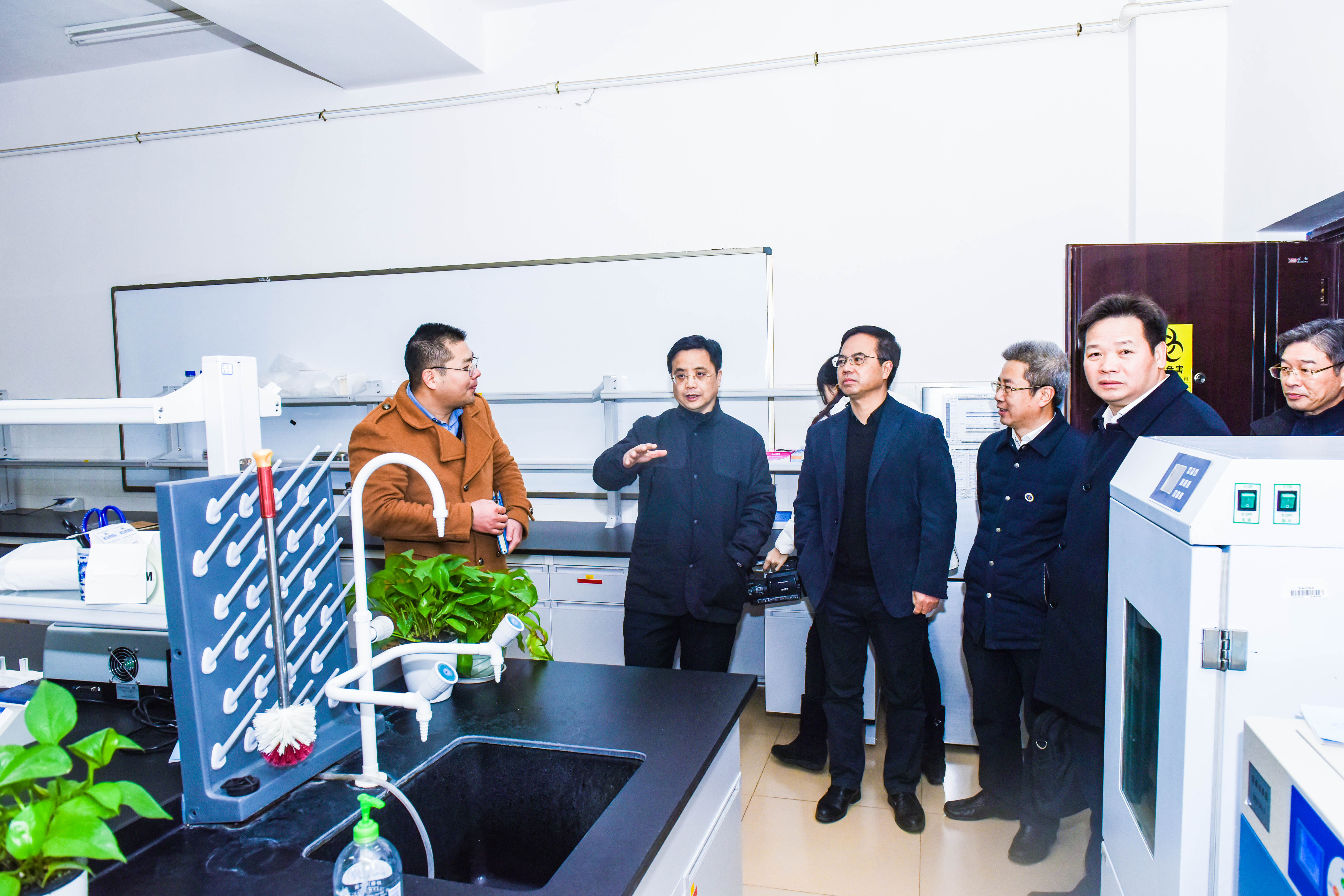 张贺文一行先后查看了生化工程技术研究中心及实验室,详细了解学校生化工程科研团队开展研究的情况,对近年来学校取得的科研成果表示肯定。