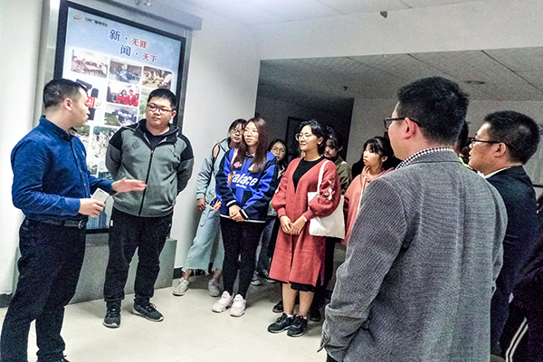 本网讯   “怎样去锻炼自己的交际能力?”“采访对象不配合怎么办?” 11月6日下午,党委宣传部新闻中心师生走进永州市融媒体中心、永州电视台参观学习,向一线媒体人学习取经。