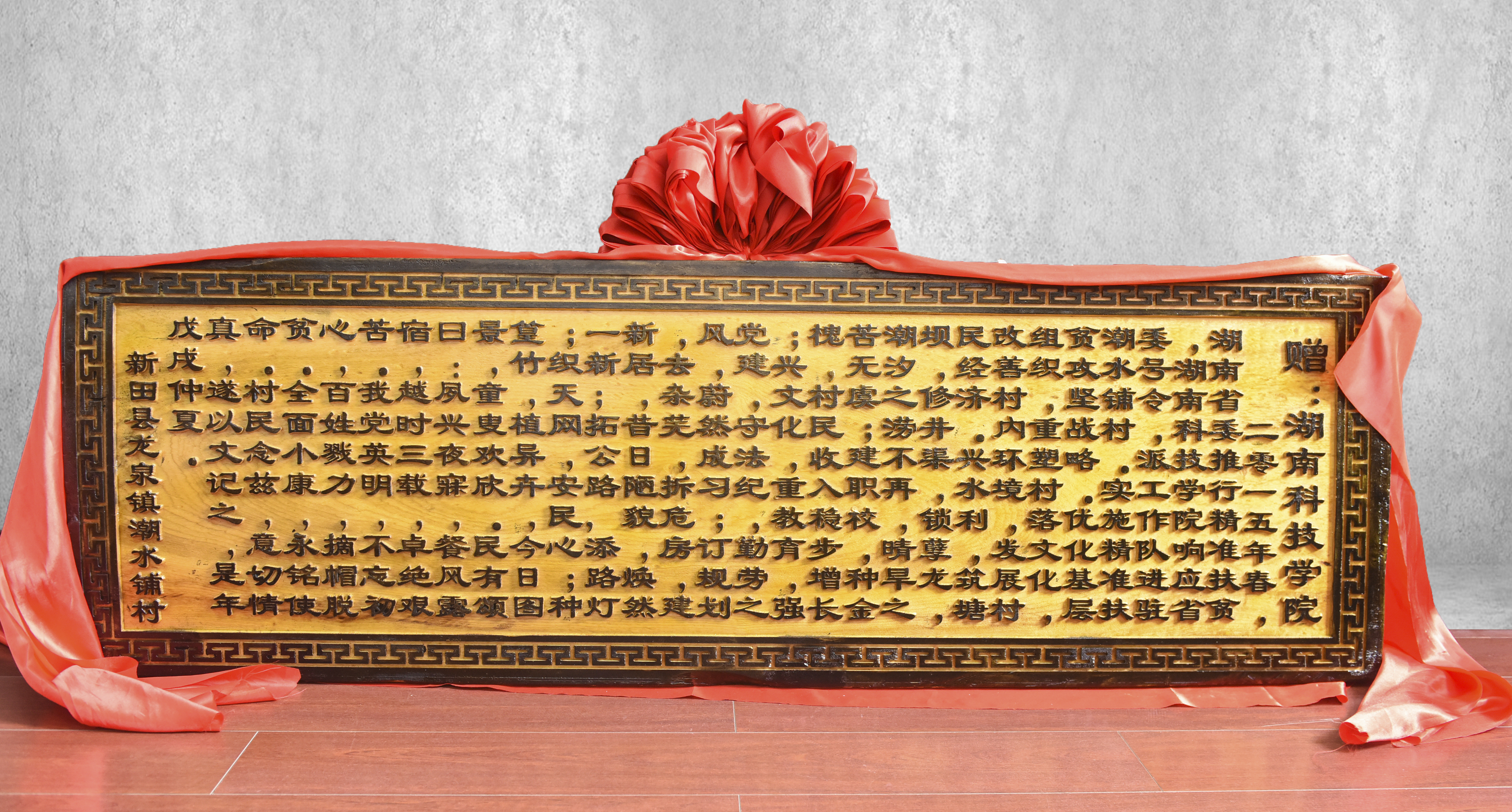 本网讯   9月6日上午,新田县潮水铺村两委班子来校赠送感谢牌匾,并座谈交流对口扶贫工作。党委副书记唐艳明主持座谈会,原驻村扶贫工作队队长贺幸福等有关部门负责人参加。