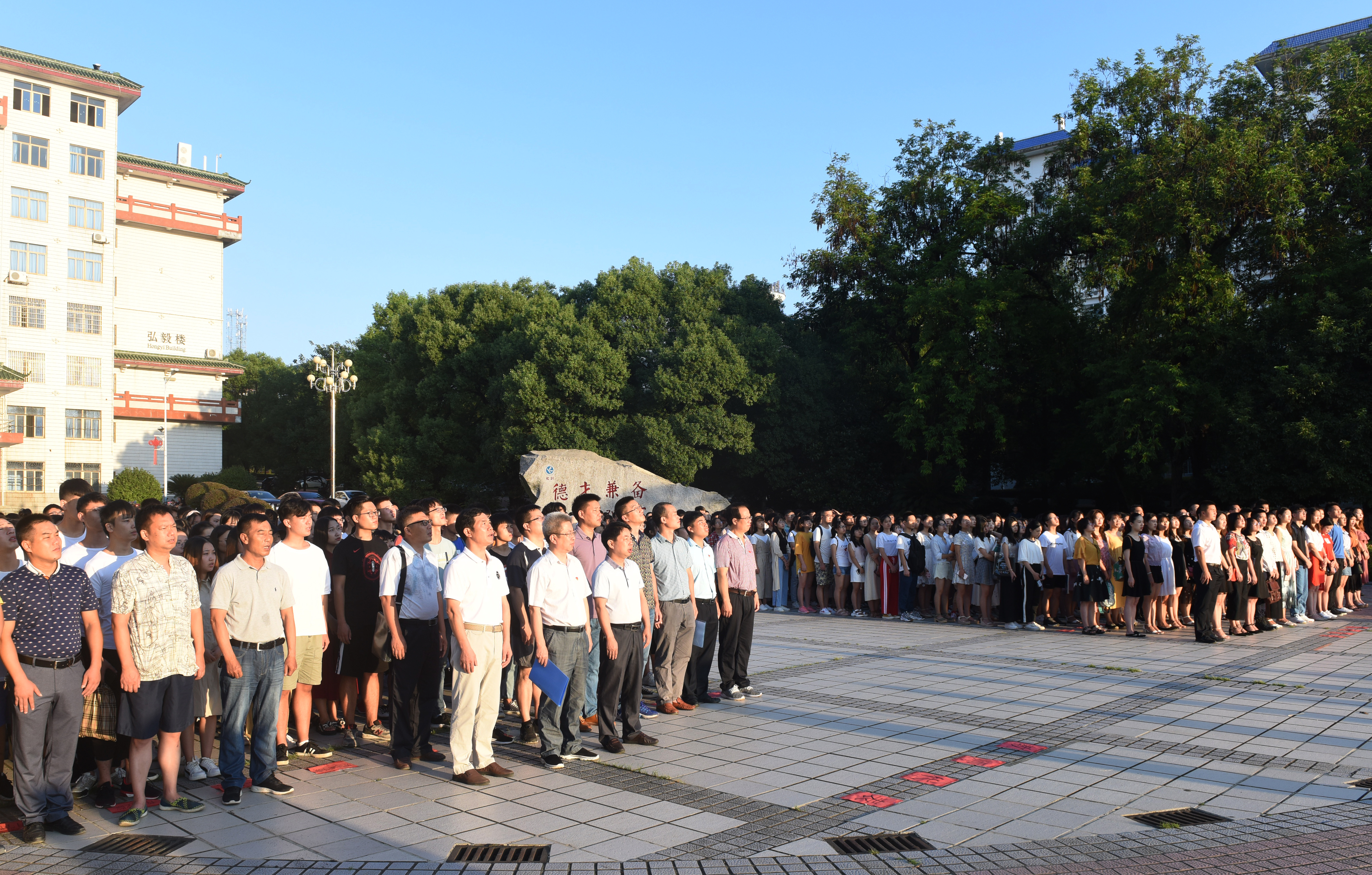 本网讯 9月3日,我校千余名师生相聚文化广场,举行新学期升国旗仪式。党委副书记、校长曾宝成及在校领导,各教学学院党总支书记、副书记,辅导员和学生代表参加。