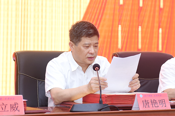 大会在庄严的国歌声中开幕。校党委副书记唐艳明宣读表彰决定。大会宣读了《关于表彰湖南省普通高校百佳大学生党员的通报(湘教工委通[2018]22号)》,王占康同学获此殊荣;大会还对邓凌峰等82名优秀共产党员,卢桂珍等9名优秀党务工作者,电子与信息工程党总支等3个先进直属党组织,化学与生物工程学院党总支化材、食品、制药党支部等7个先进党支部以及胡清华等“微党课”比赛获奖人员及优秀组织单位予以表彰。