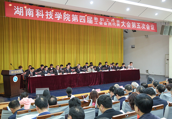 3月30日下午4:30,学校第四届教职工代表工会会员代表大会第五次会议预备会议及主席团第一次会议在尚美楼二楼演播厅举行。